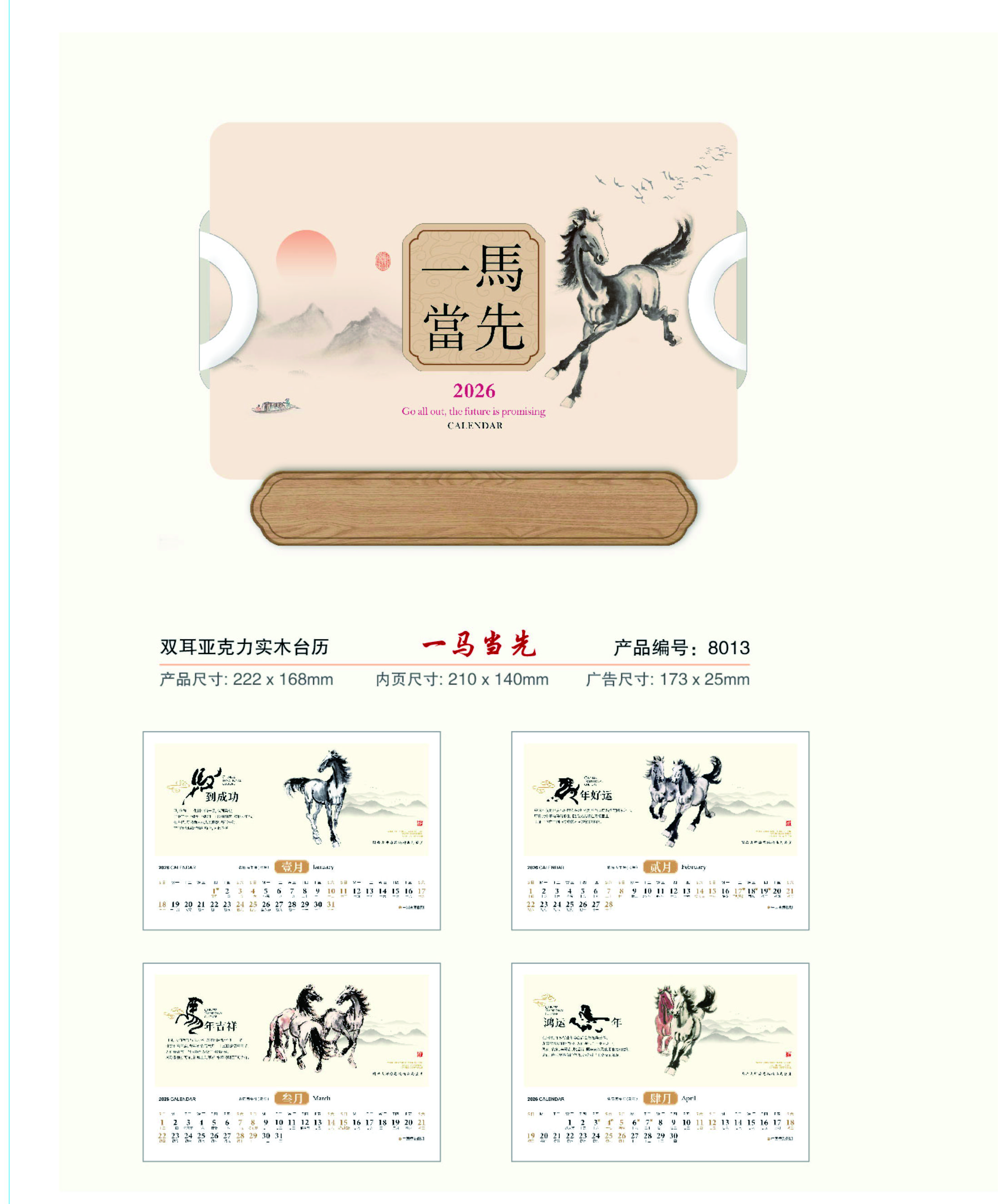 雙耳亞克力實(shí)木臺(tái)歷-一馬當(dāng)先