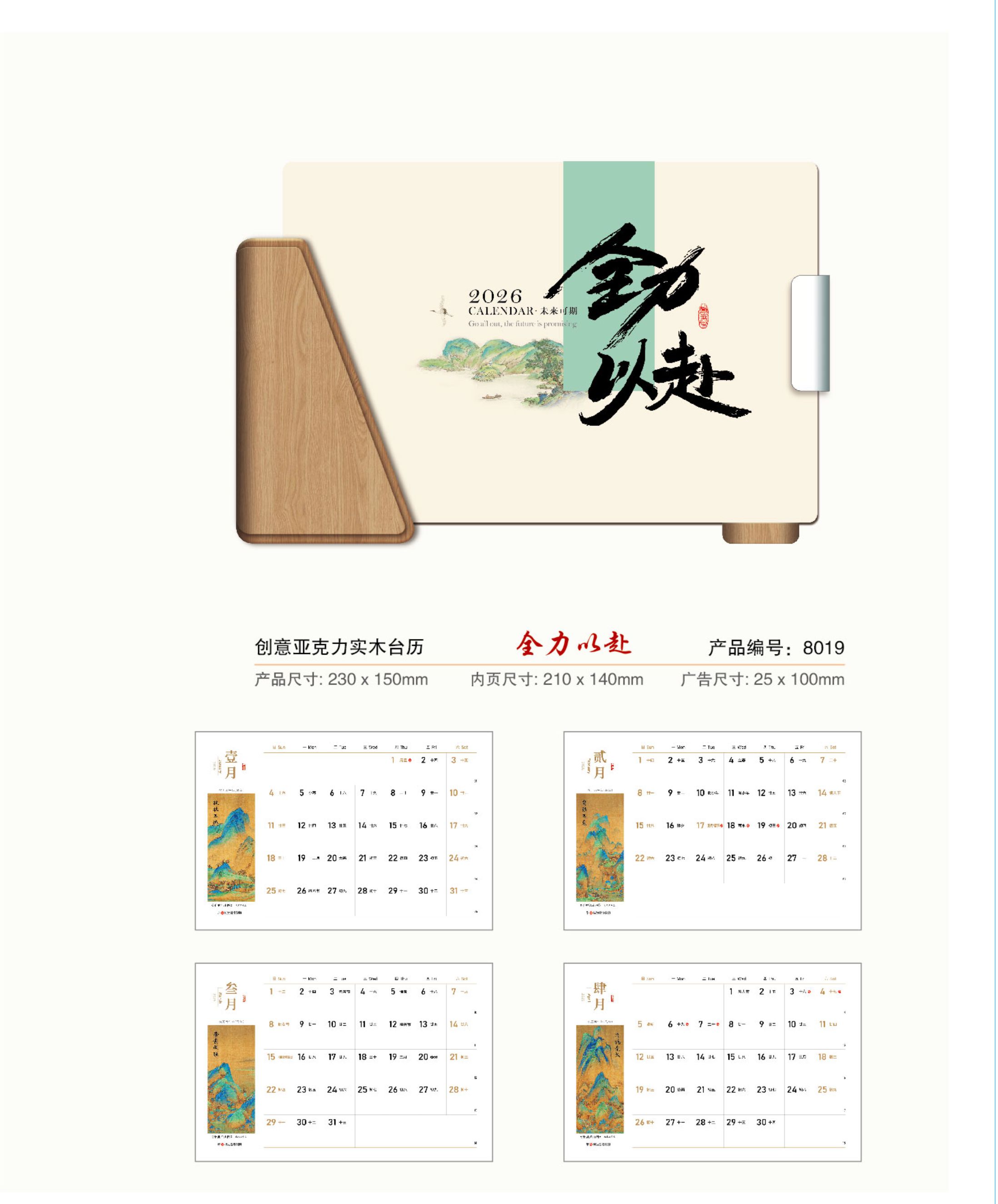 創(chuàng)意亞克力實(shí)木臺(tái)歷-全力以赴