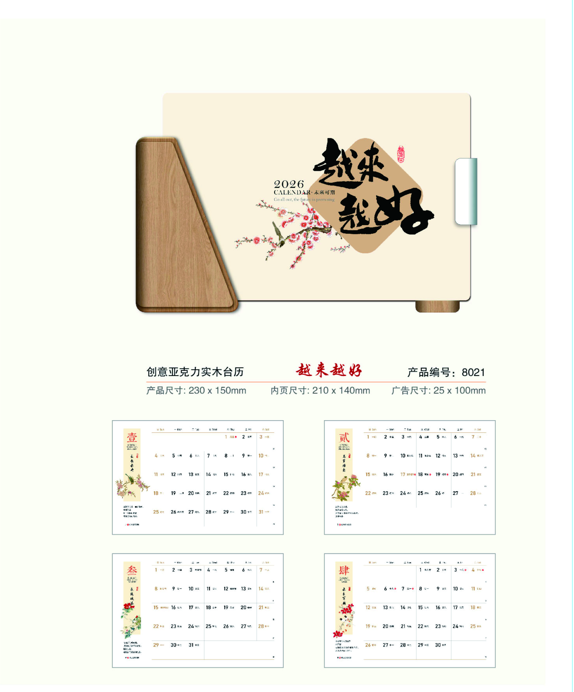 創(chuàng)意亞克力實(shí)木臺(tái)歷-越來越好