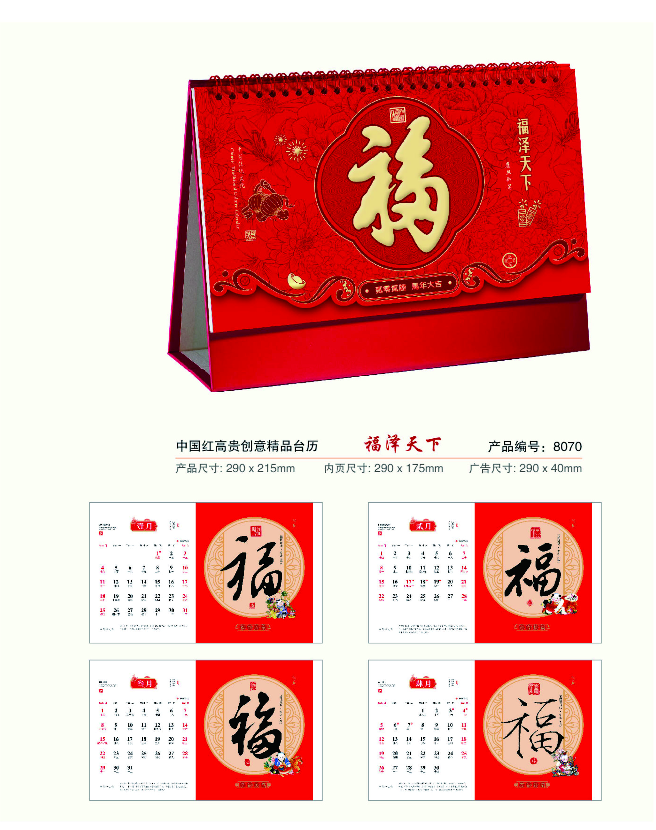 中國紅高貴創(chuàng)意精品臺歷-福澤天下