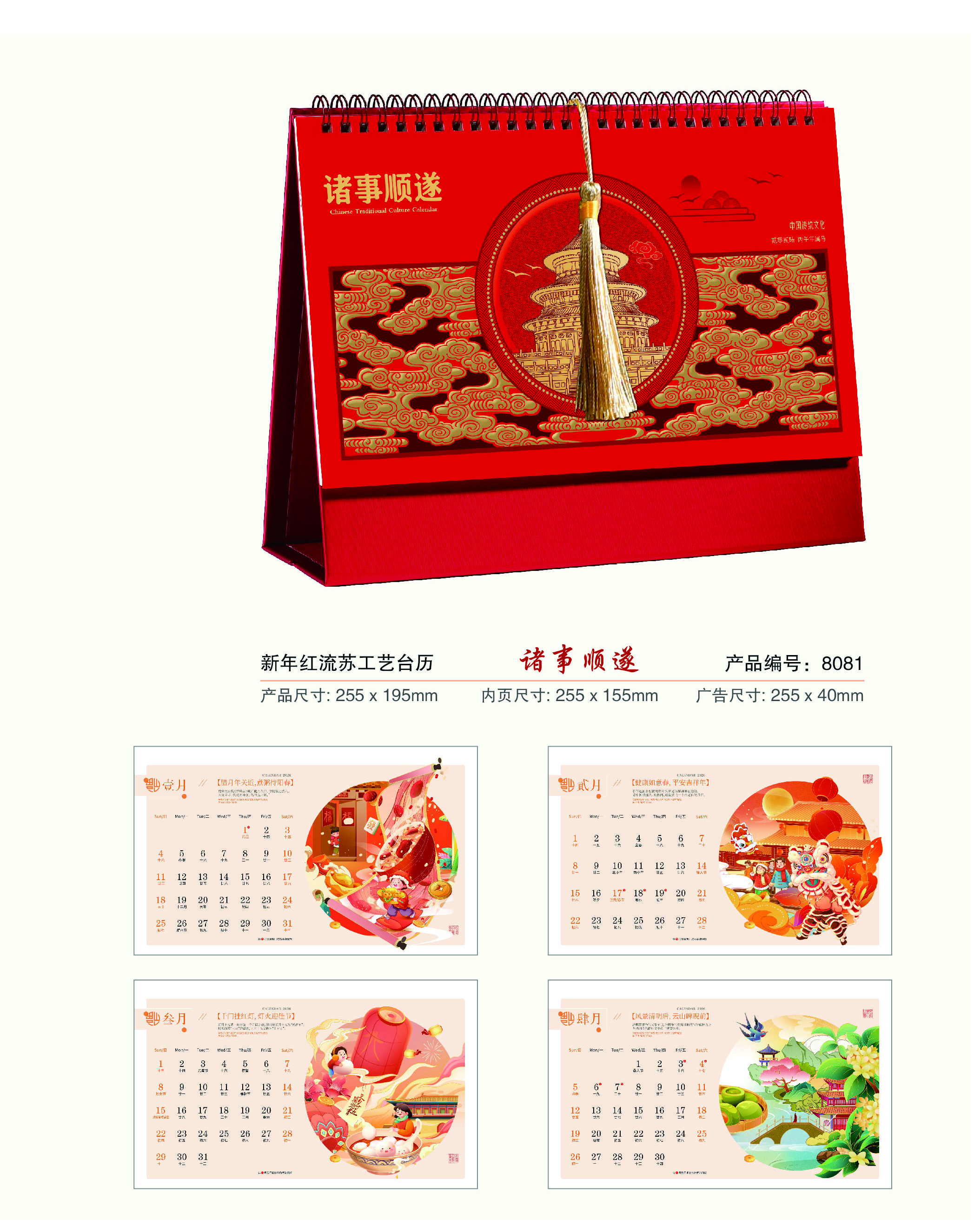 新年紅流蘇臺歷 -諸事順?biāo)?/li>
