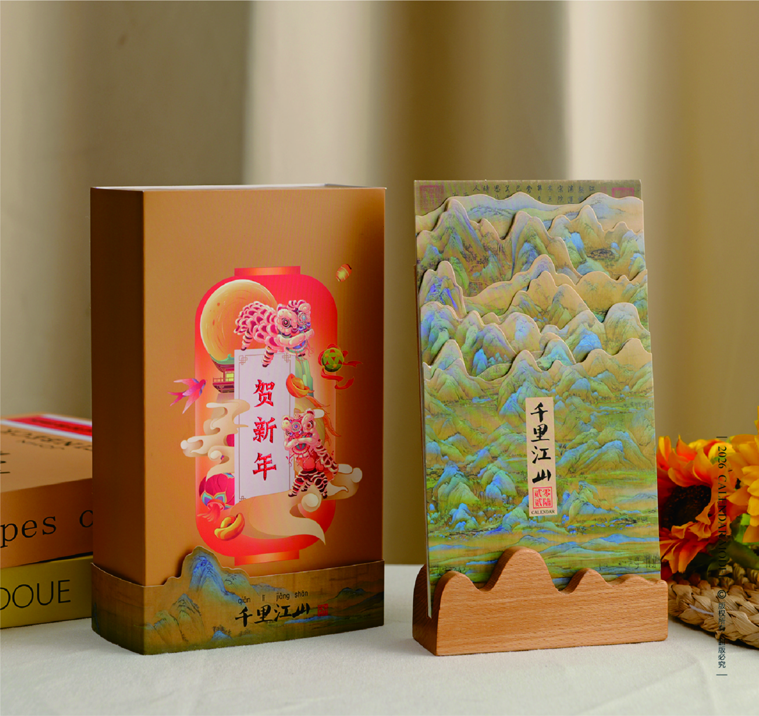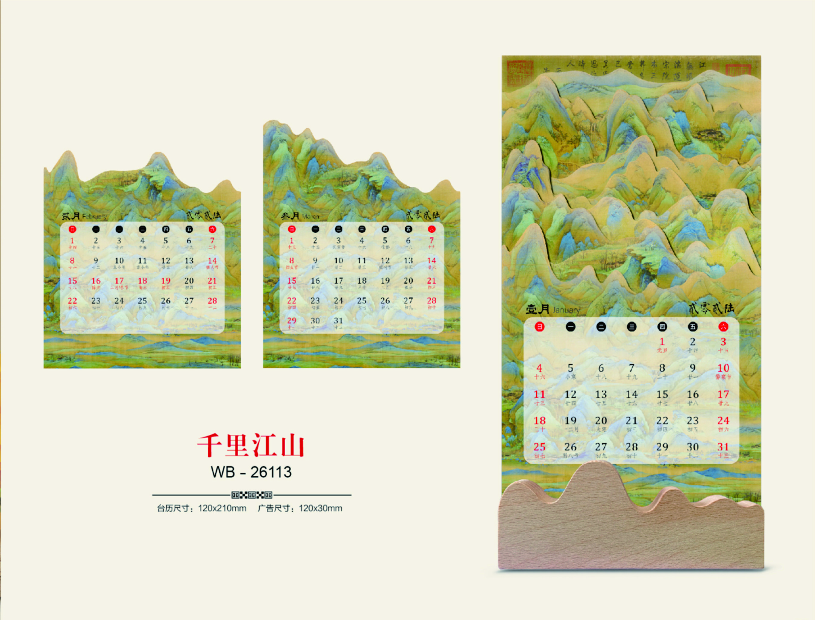 十三張國畫風(fēng)情木座臺歷-千里江山