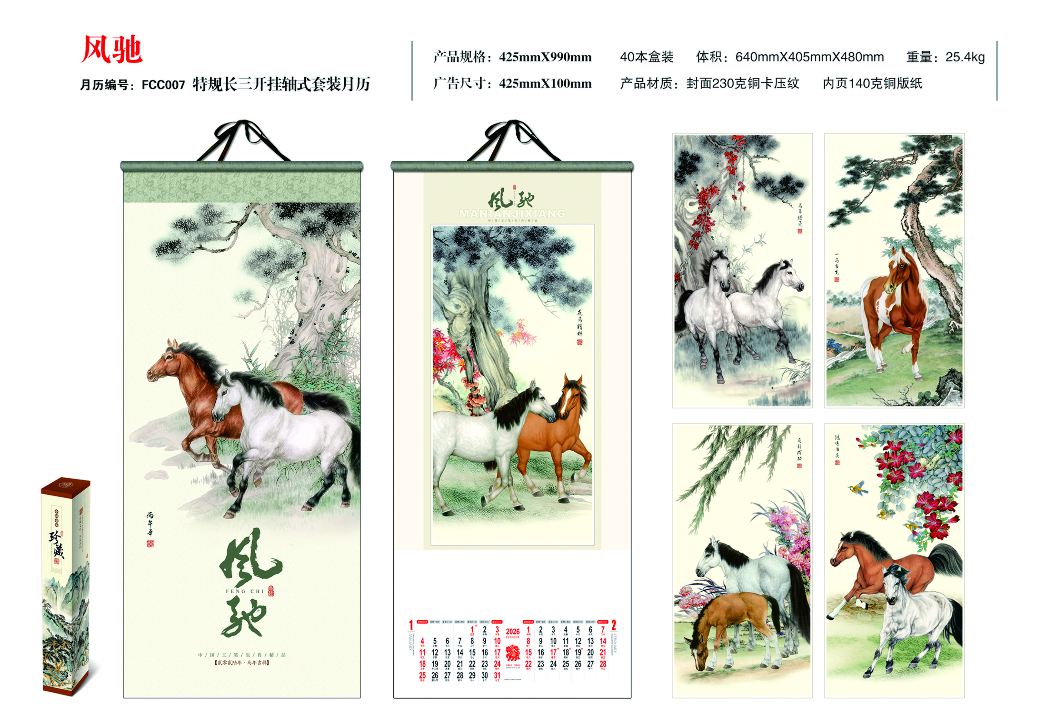 特規(guī)長三開掛軸式套裝月歷-風馳