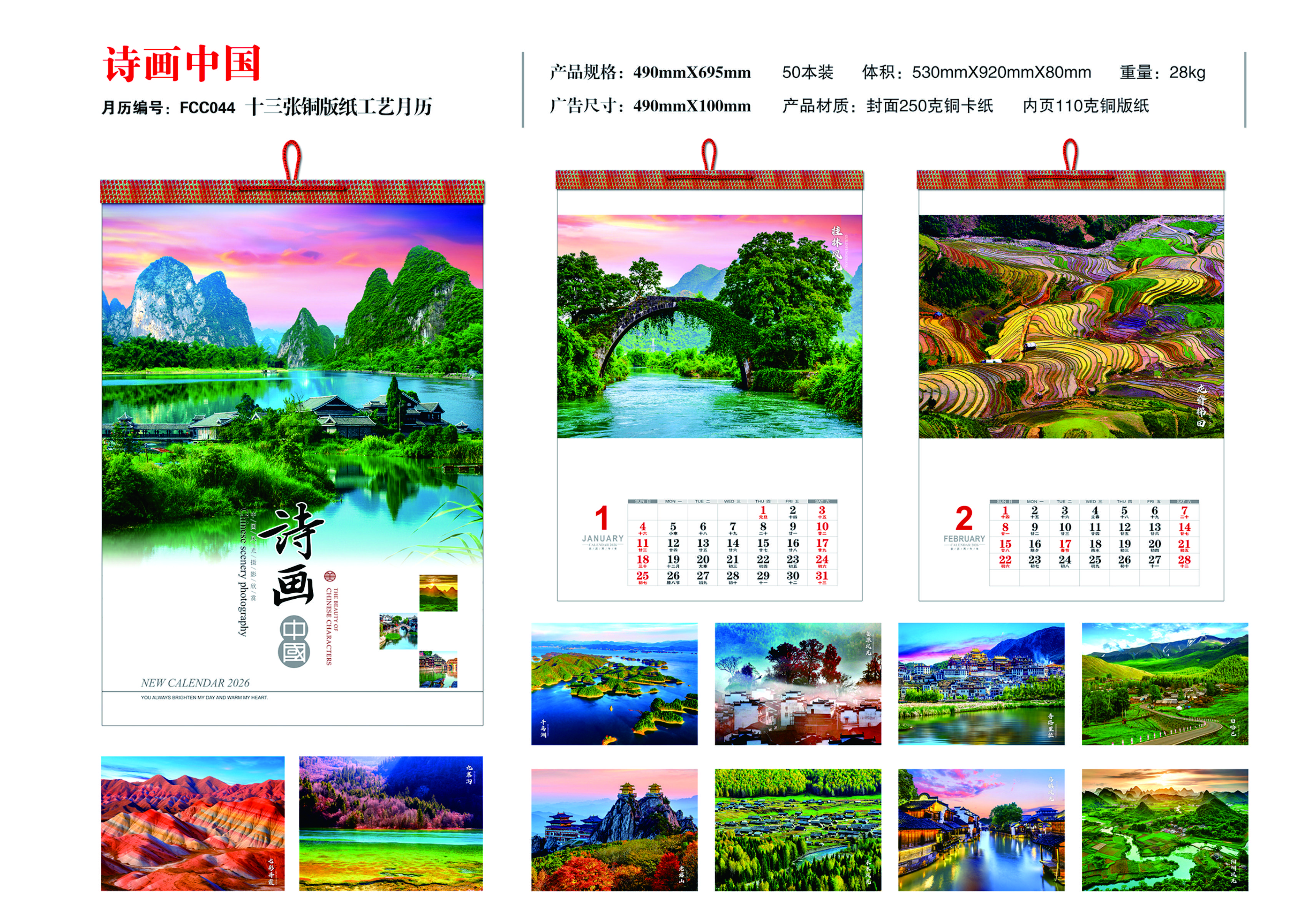 十三張銅版紙工藝月歷- 詩(shī)畫中國(guó)