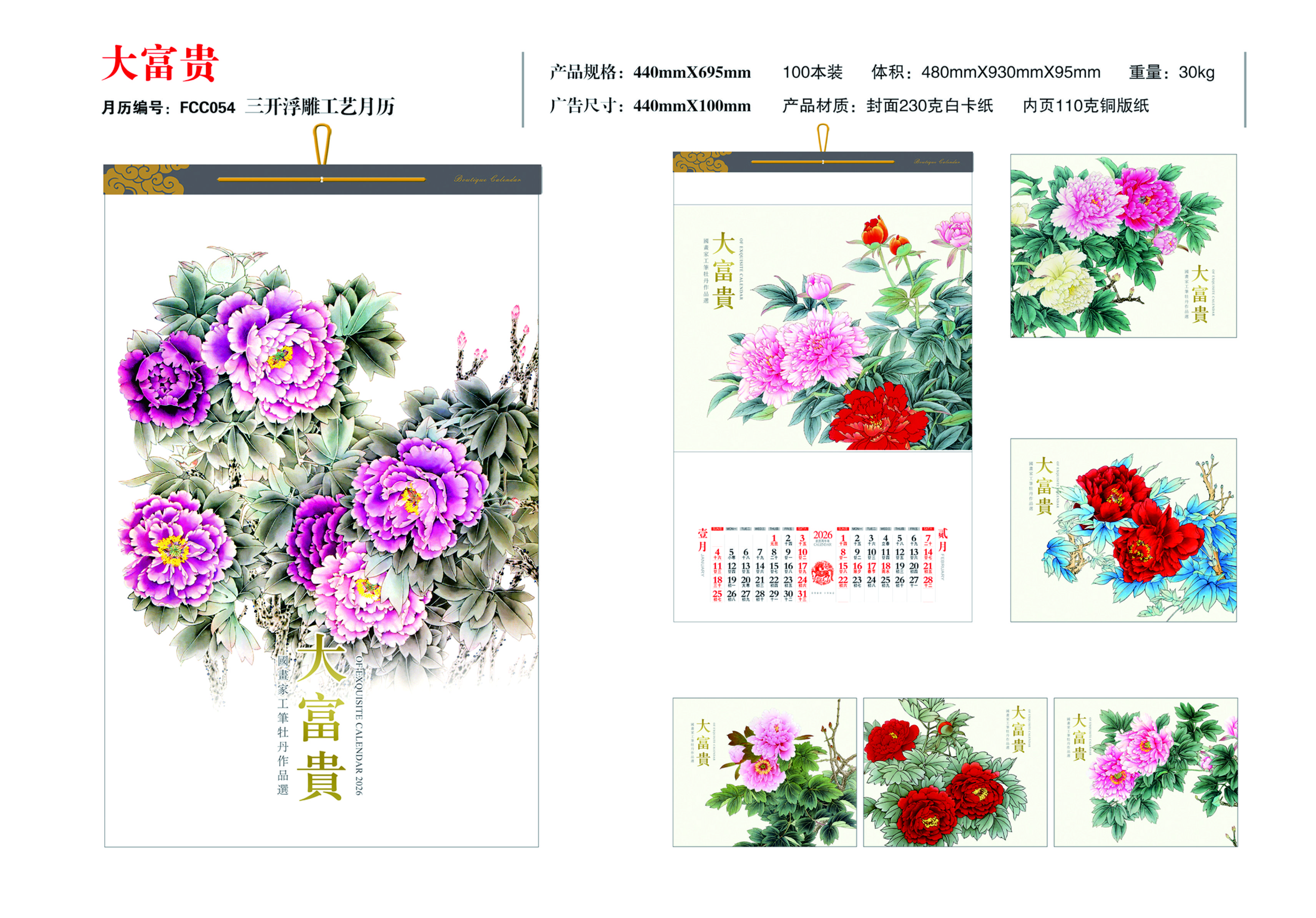 三開(kāi)浮雕布紋工藝月歷-大富貴