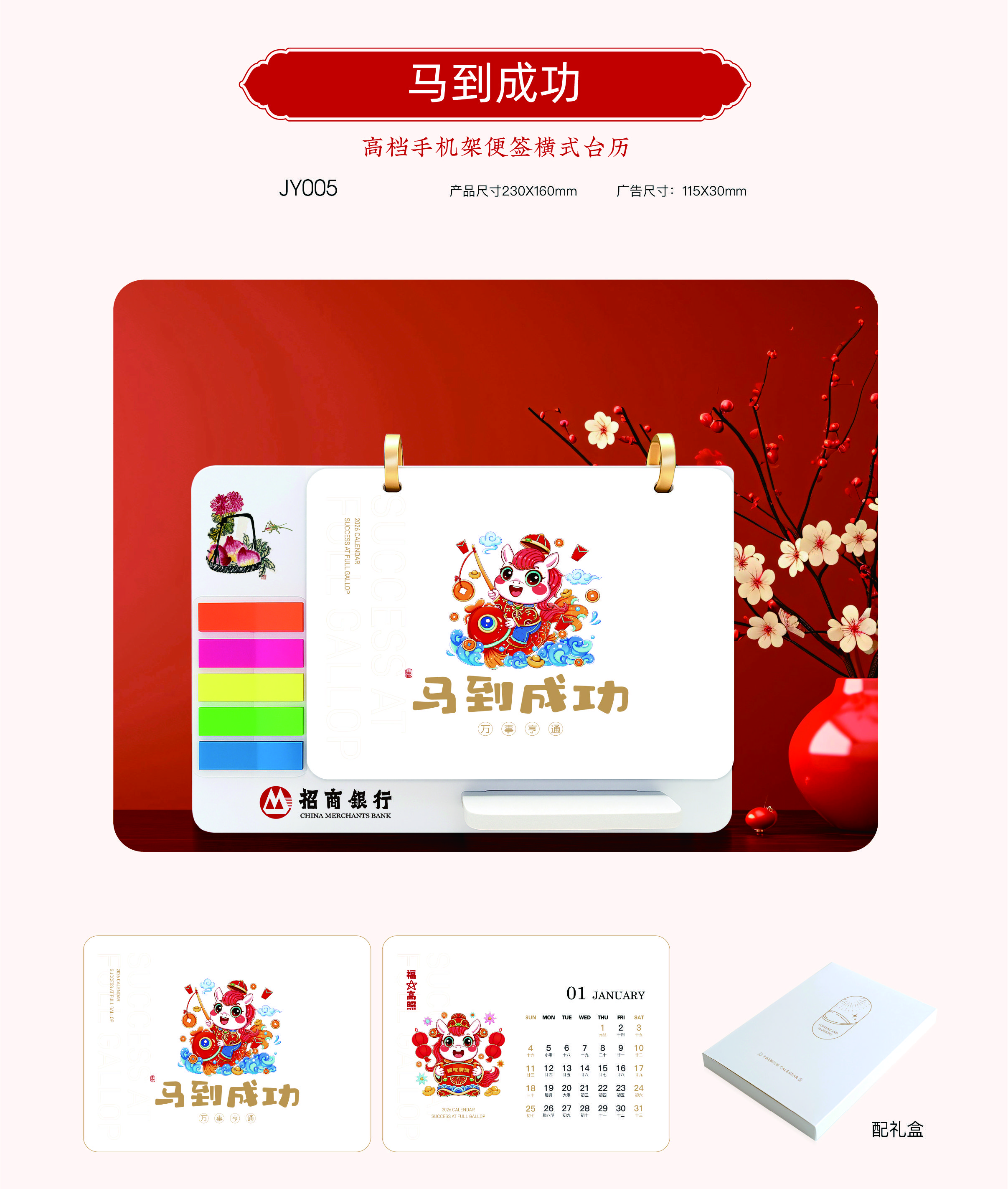 高檔手機架便簽橫式臺歷-馬到成功