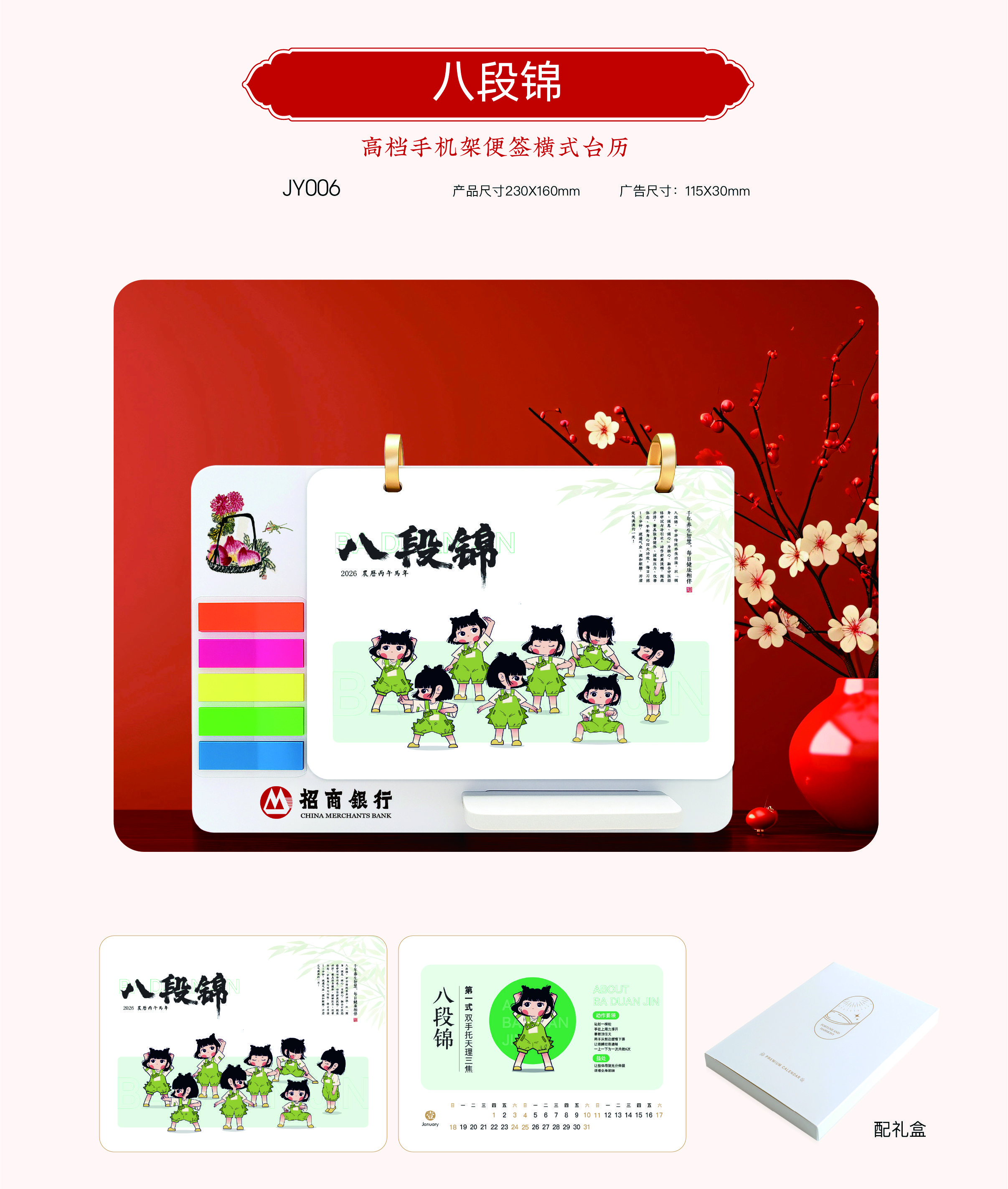 高檔手機(jī)架便簽橫式臺(tái)歷- 八段錦