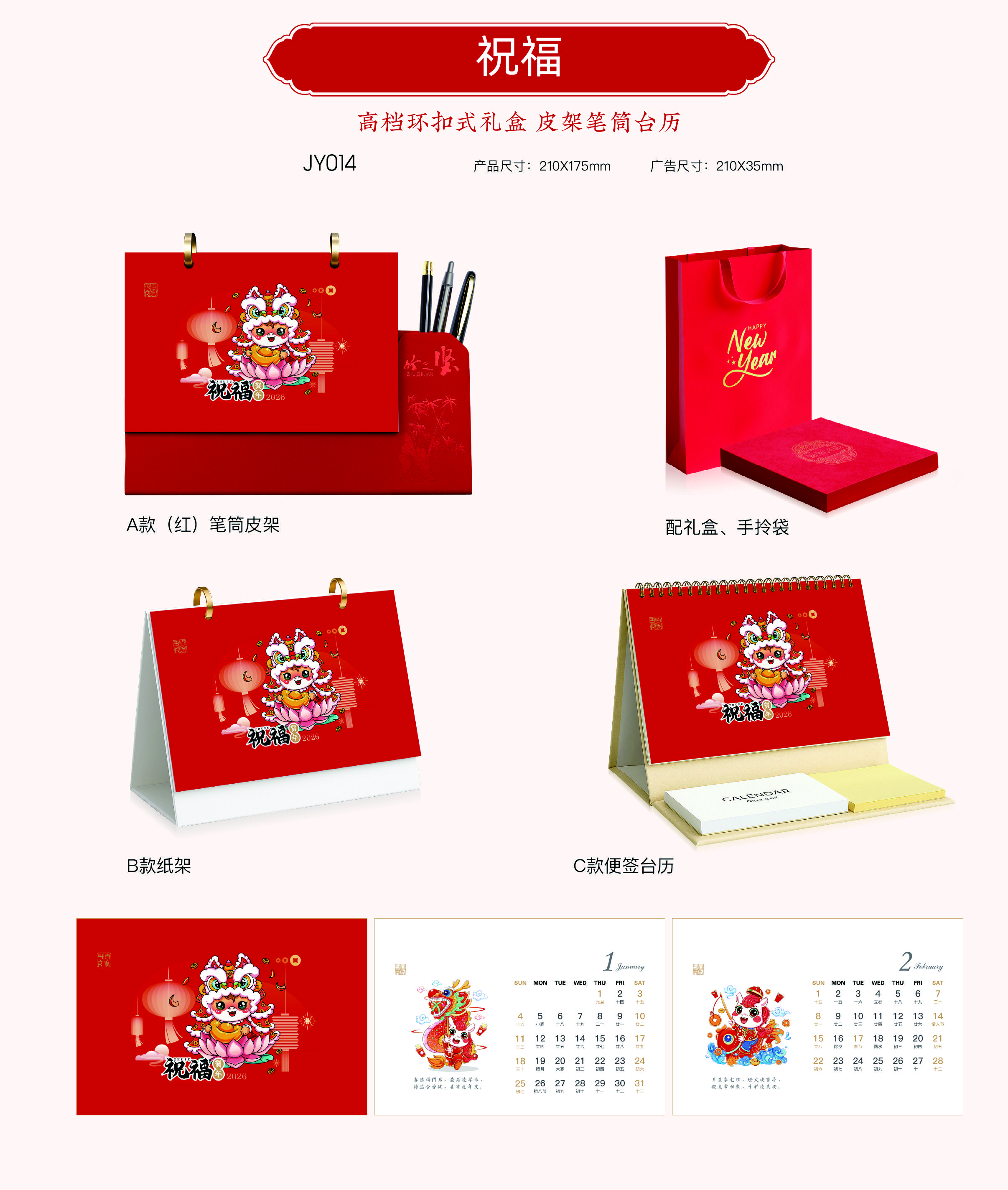 高檔環(huán)扣式禮盒17張皮架筆筒臺歷 -祝福
