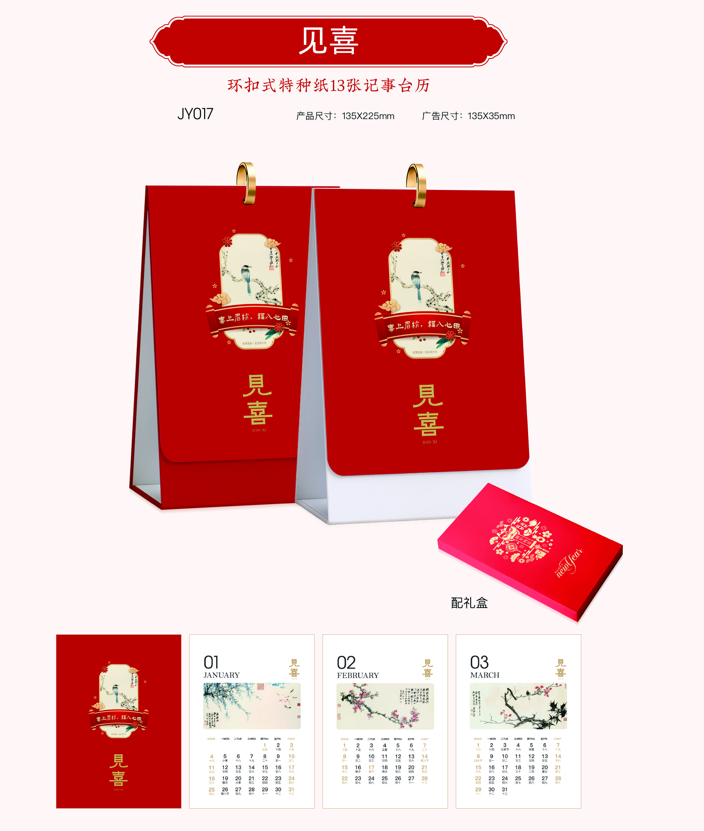 環(huán)扣式特種紙十三張記事臺(tái)歷 -見喜