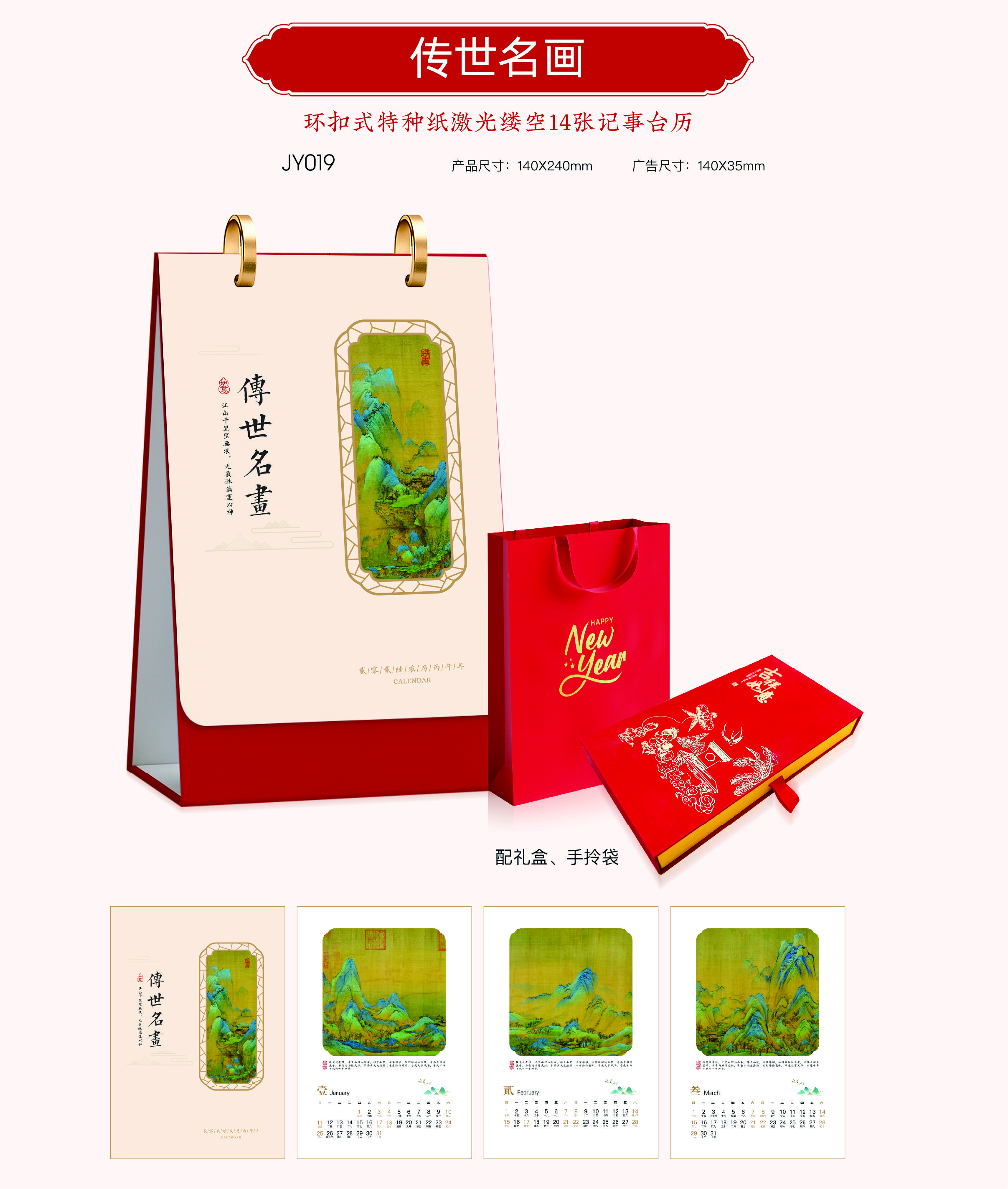 環(huán)扣式特種紙激光縷空十四張記事臺(tái)歷 -傳世名畫