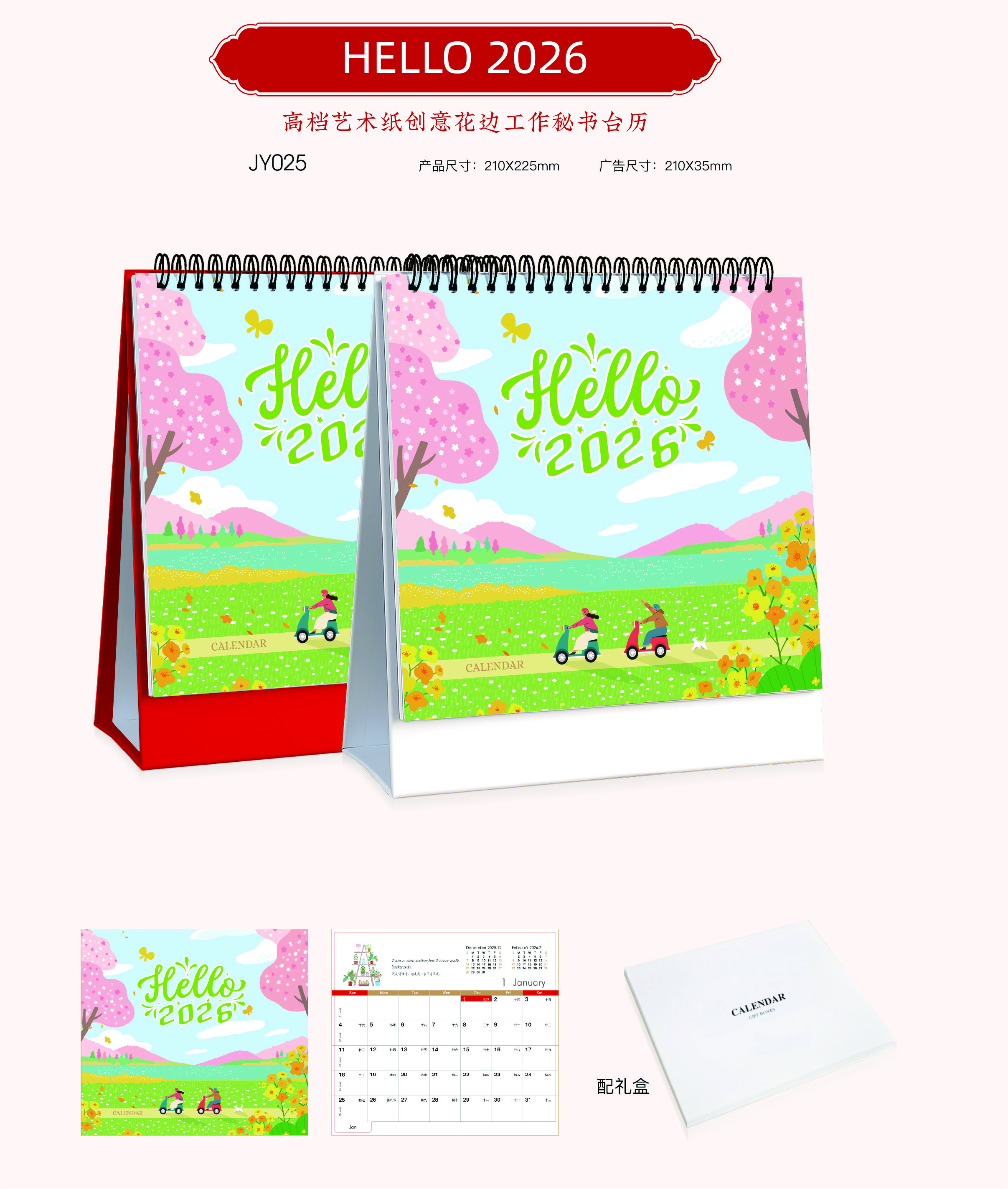 高檔藝術(shù)紙創(chuàng)意花邊工作秘書臺歷 -HELL 2026