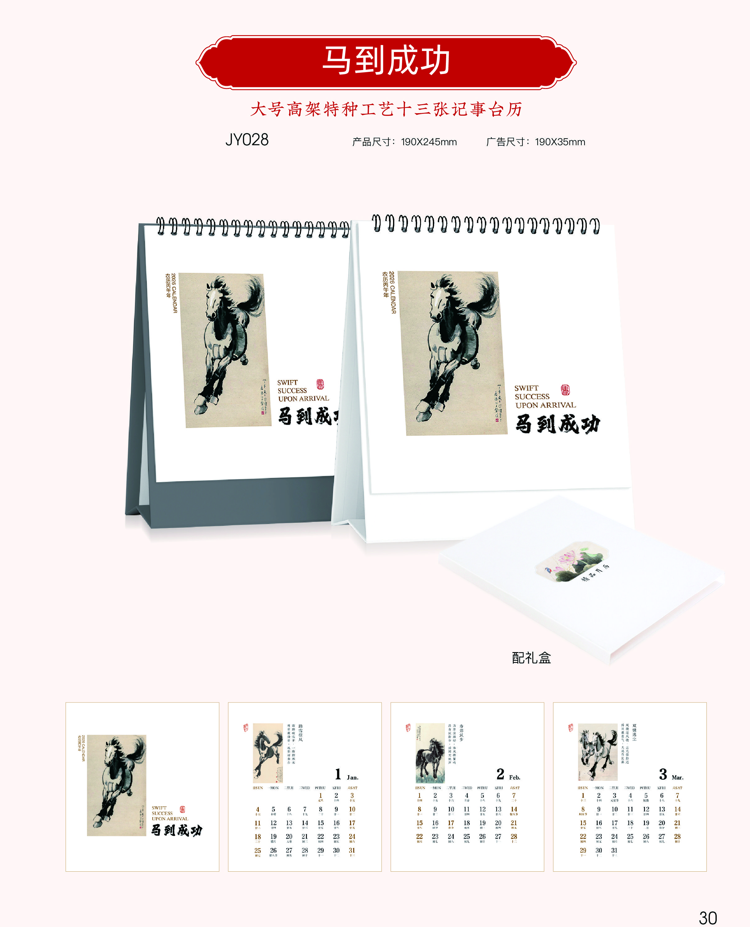 大號(hào)高架特種工藝十三張記事臺(tái)歷 -馬到成功
