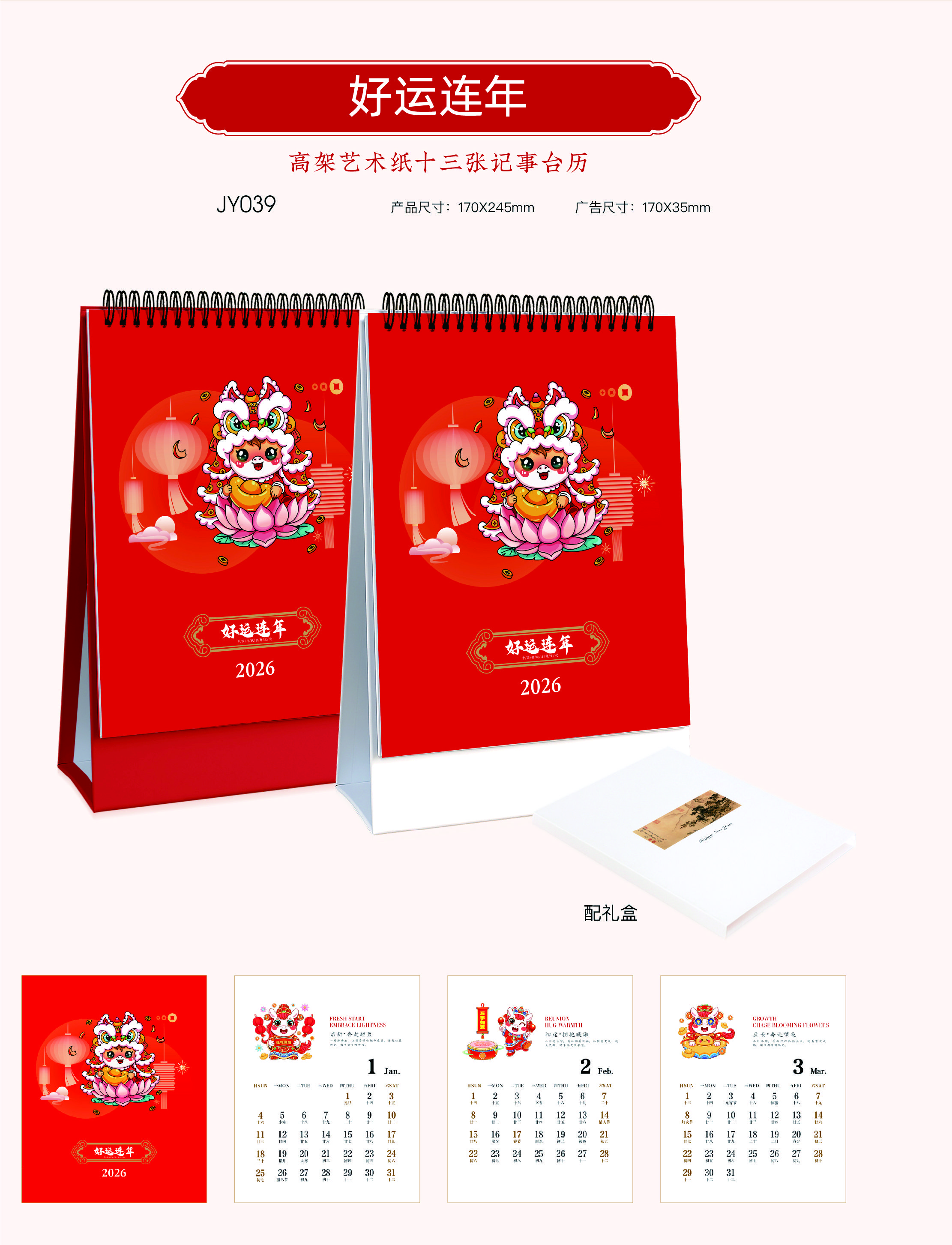 高架藝術(shù)紙十三張記事臺(tái)歷 -好運(yùn)連年