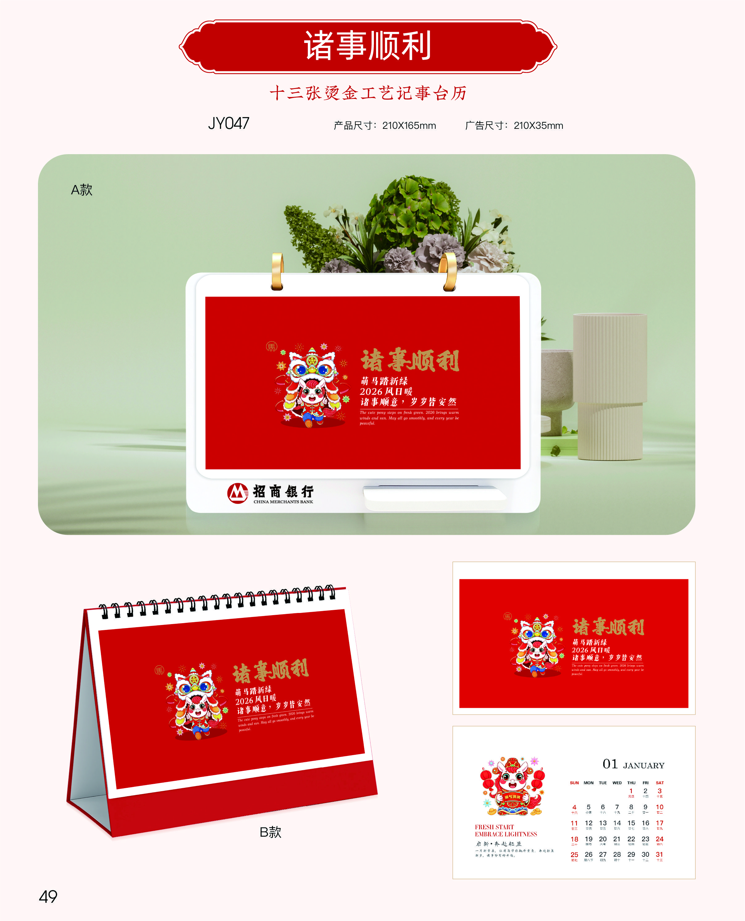 十三張燙金工藝記事臺歷 -諸事順利