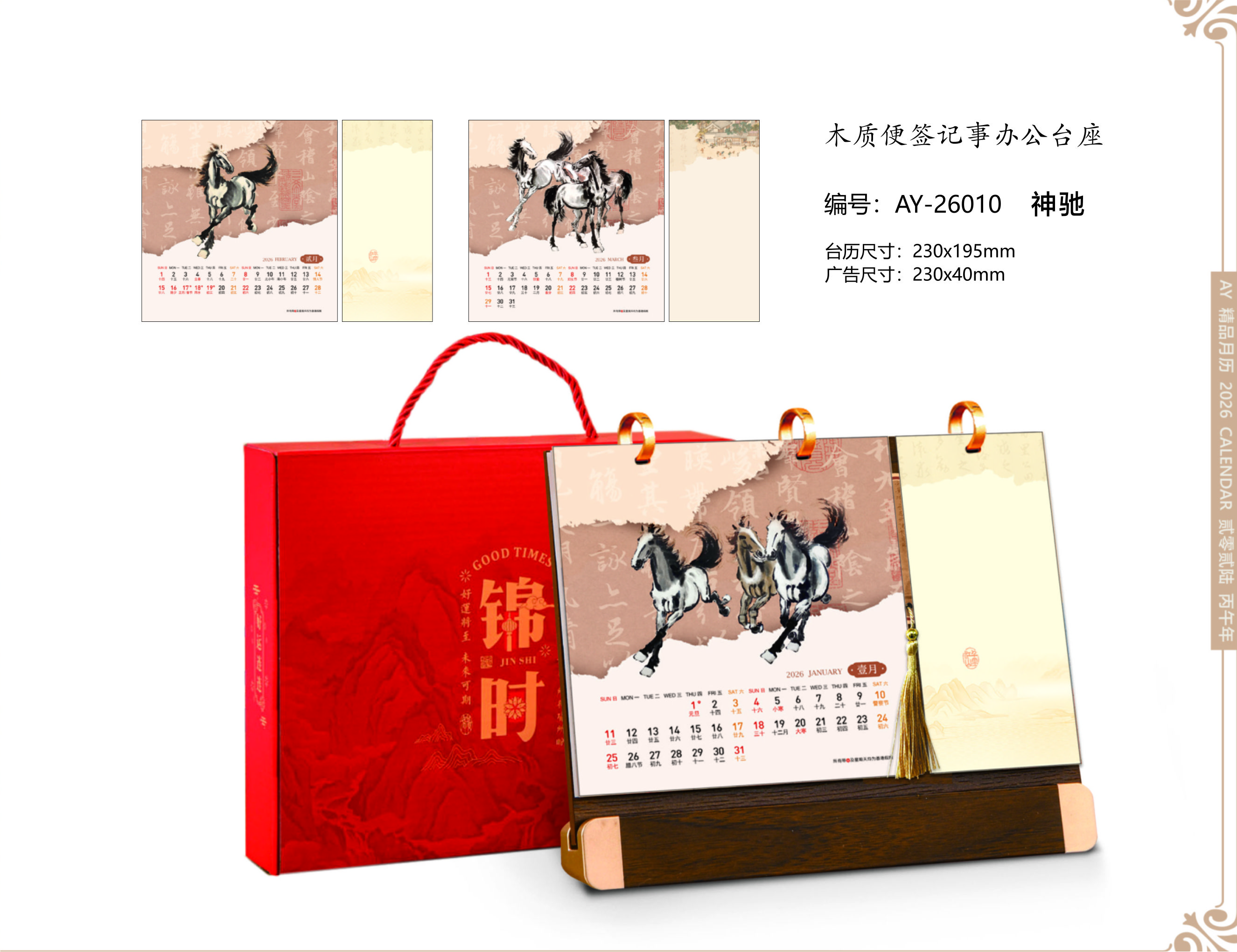 臺(tái)歷尺寸:230x195mm