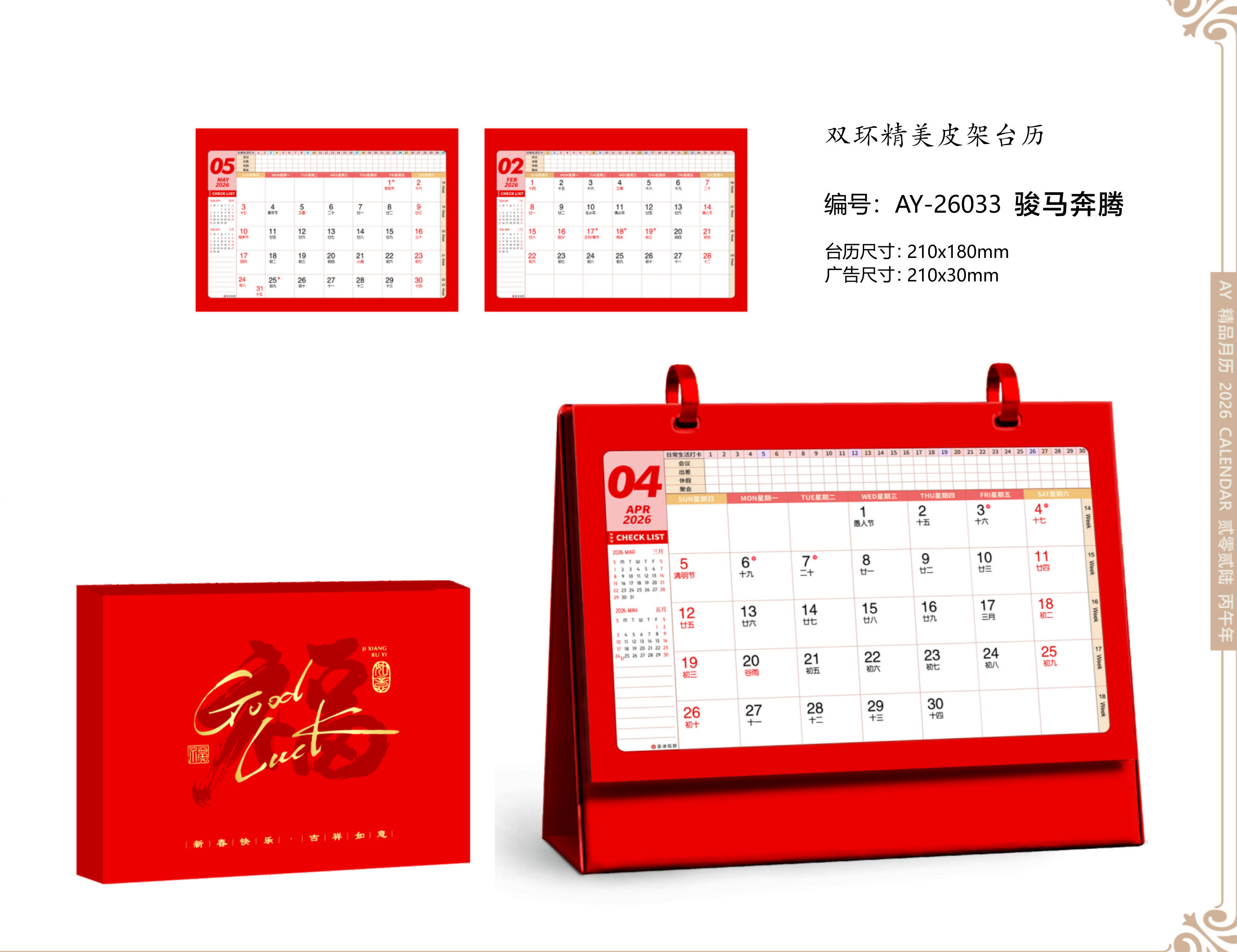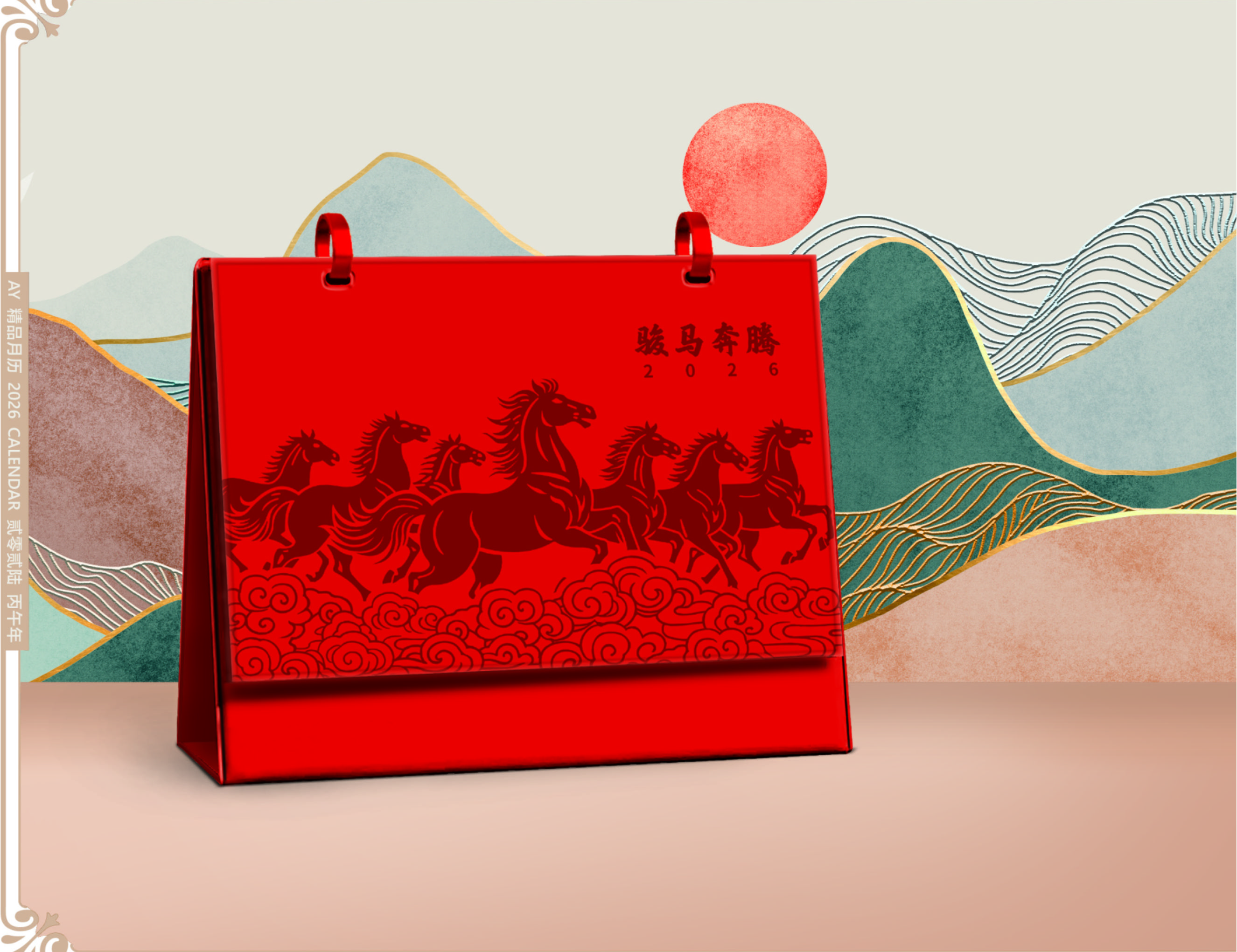 雙環(huán)精美皮架臺(tái)歷-駿馬奔騰