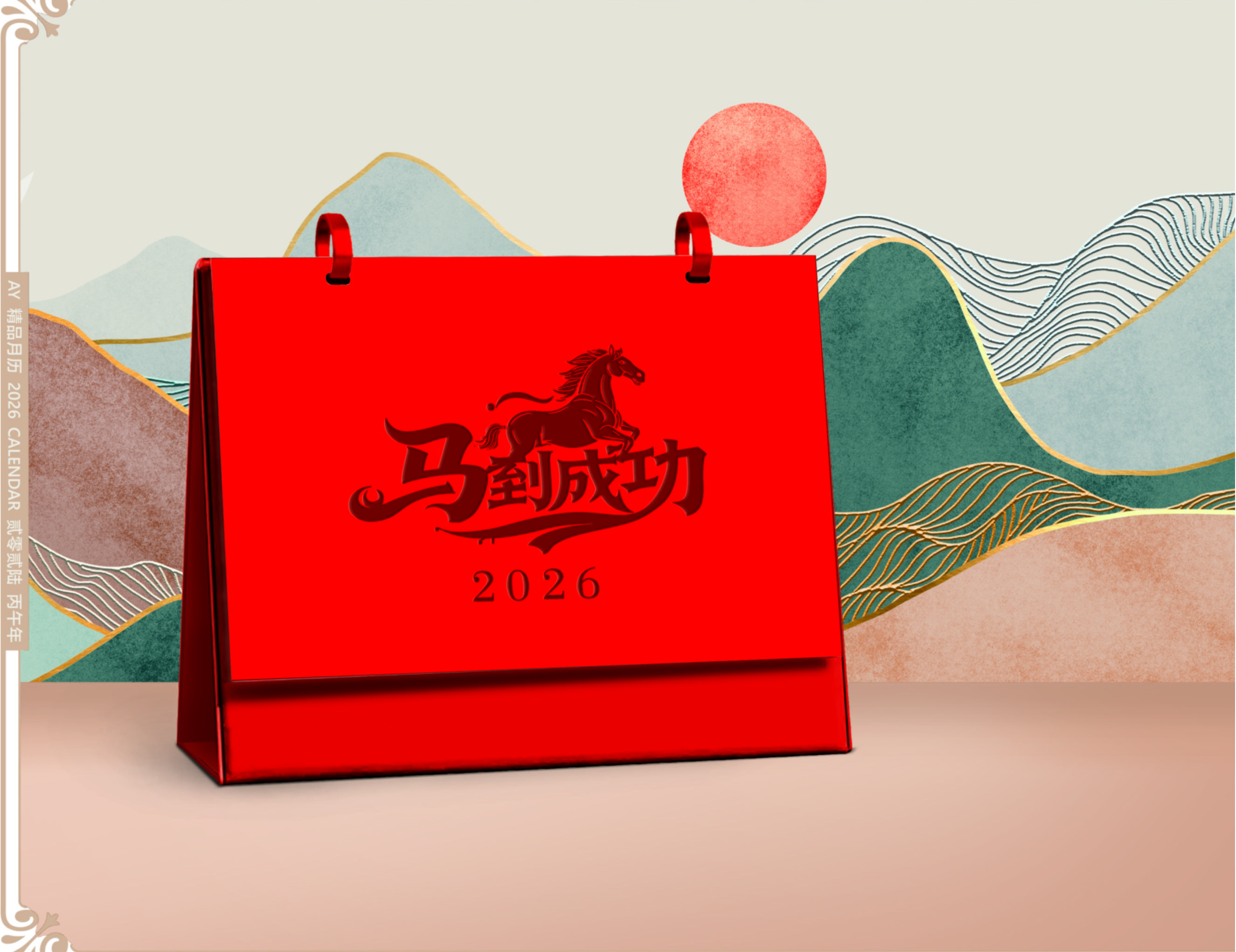 雙環(huán)精美皮架臺歷-馬到成功