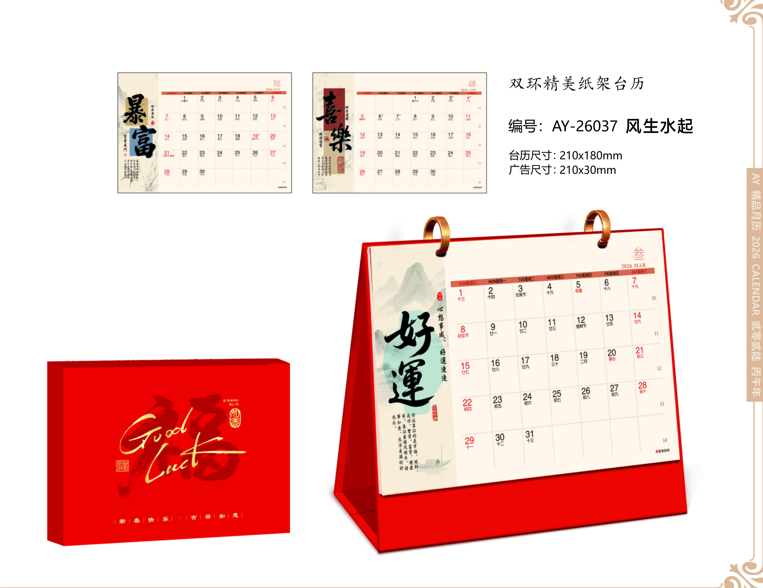 雙環(huán)精美紙架臺歷-風(fēng)生水起