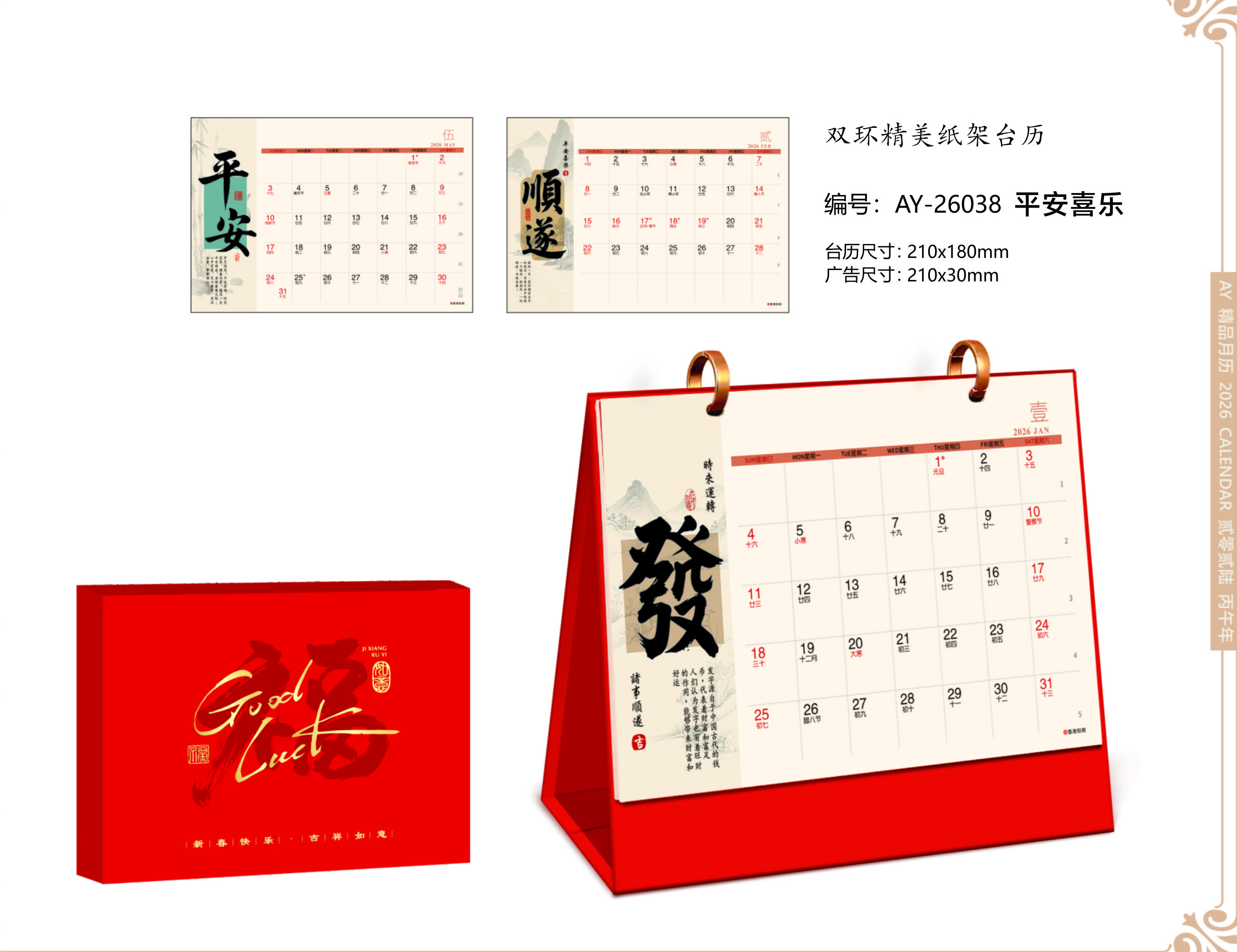 雙環(huán)精美紙架臺(tái)歷-平安喜樂