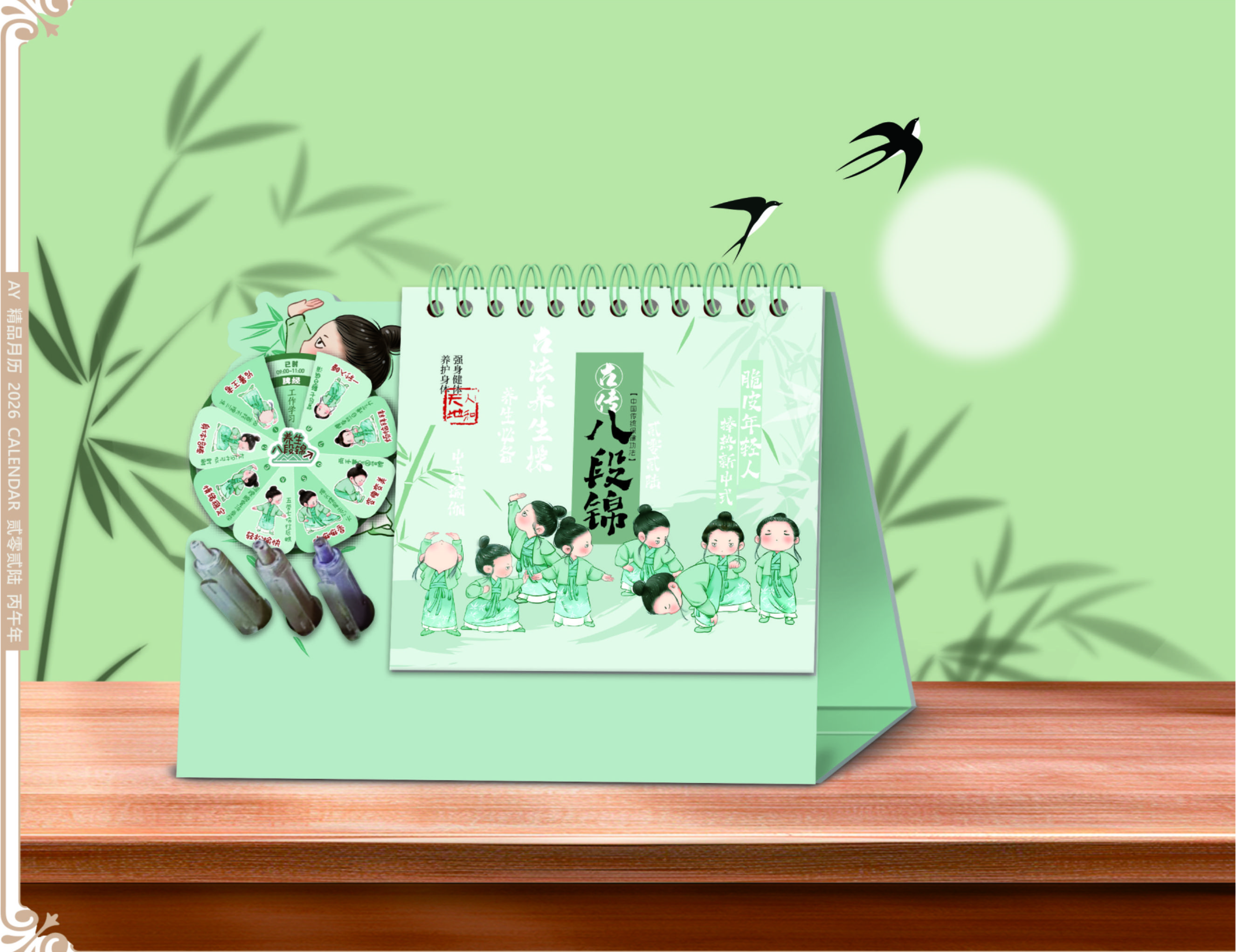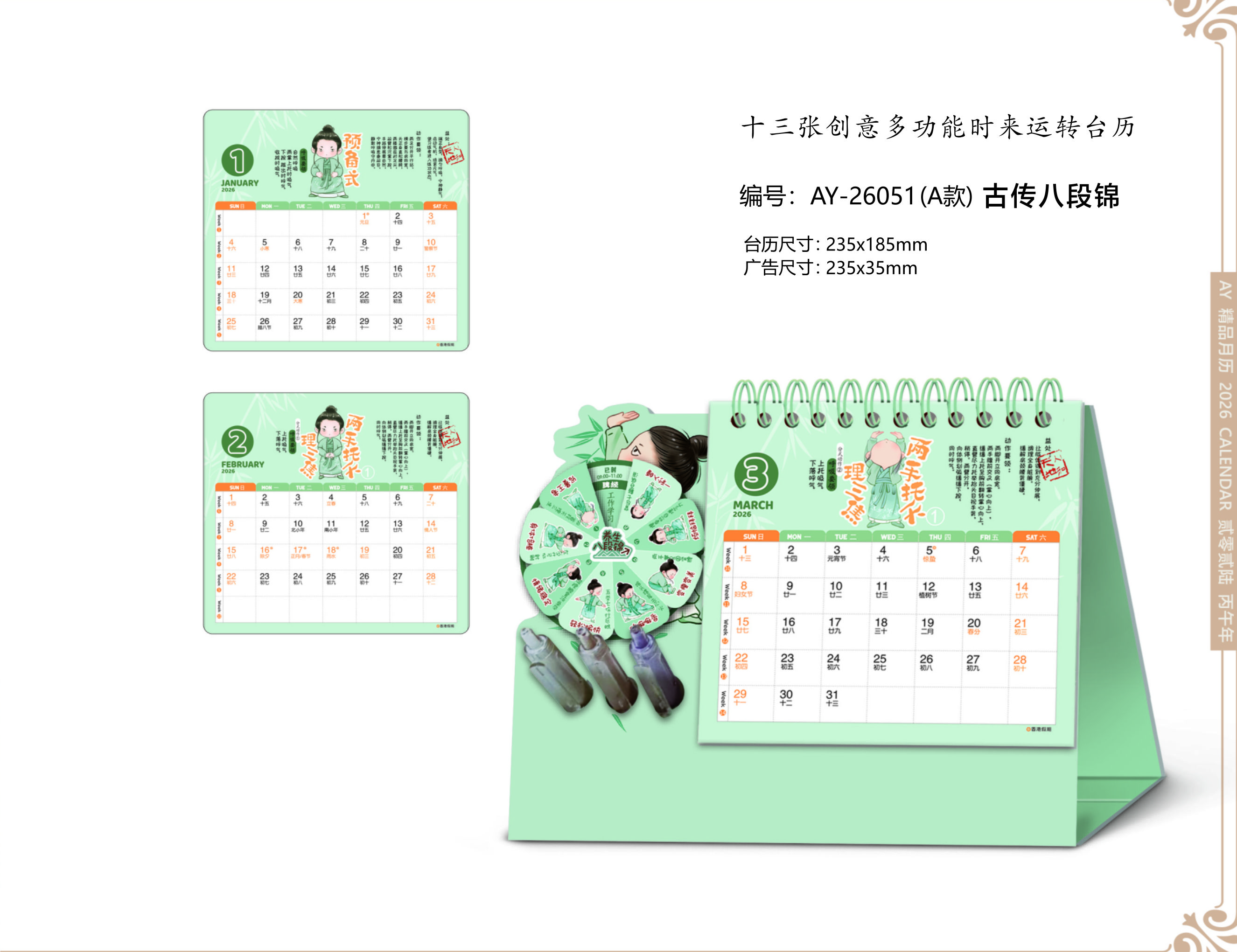 十三張創(chuàng)意多功能時來運轉臺歷-古傳八段錦
