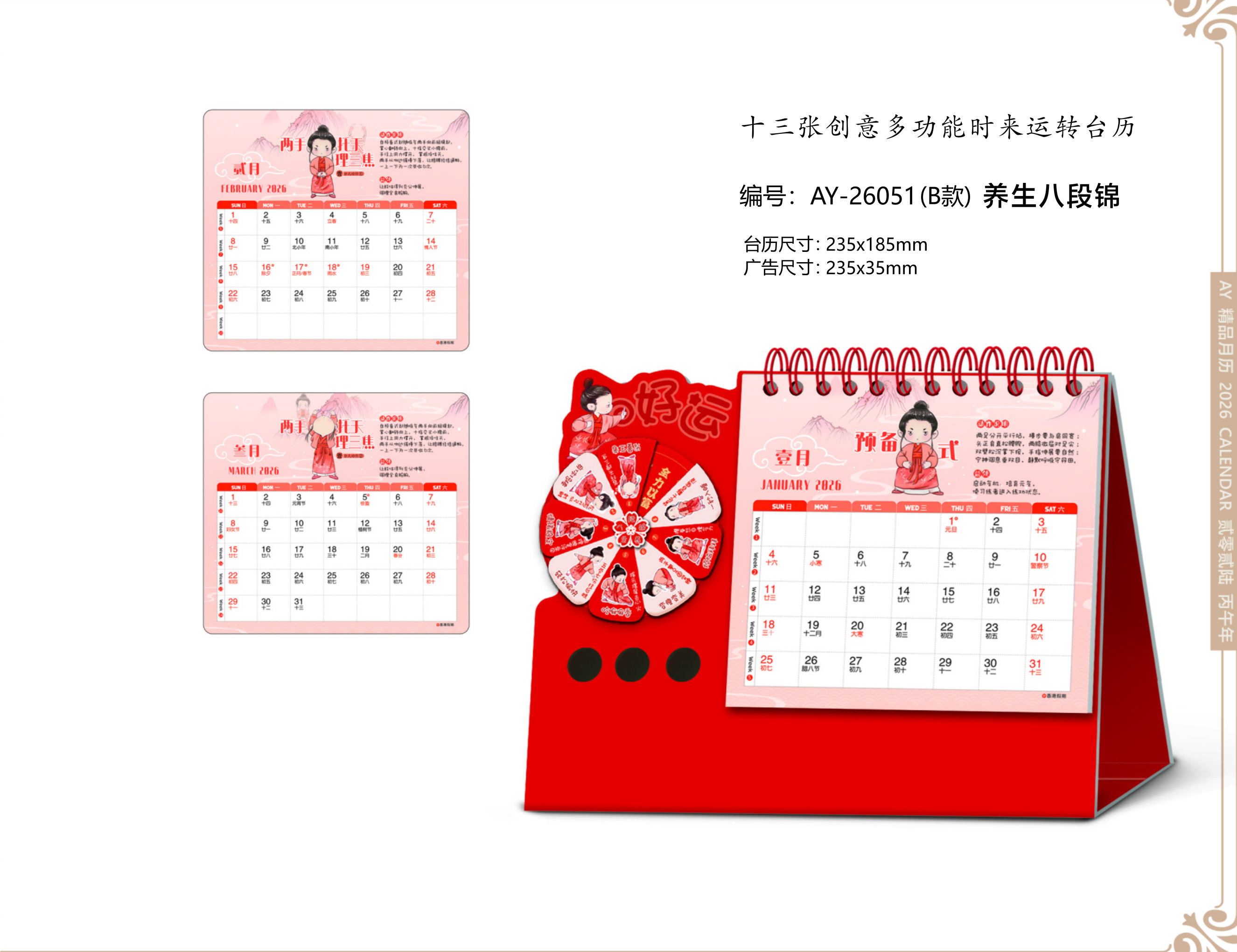 十三張創(chuàng)意多功能時來運轉(zhuǎn)臺歷-養(yǎng)生八段錦