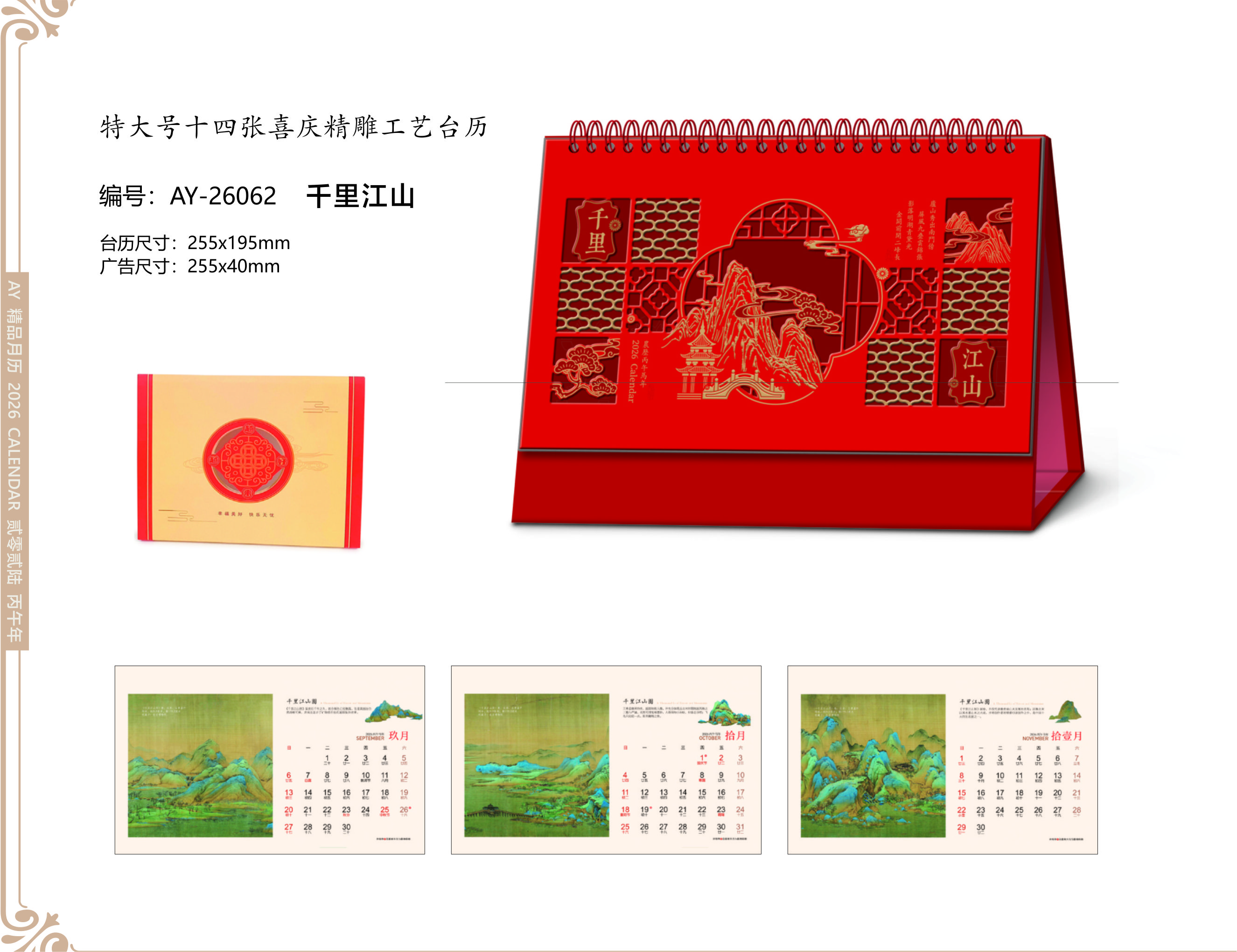 特大號(hào)十四張喜慶精雕工藝臺(tái)歷-千里江山