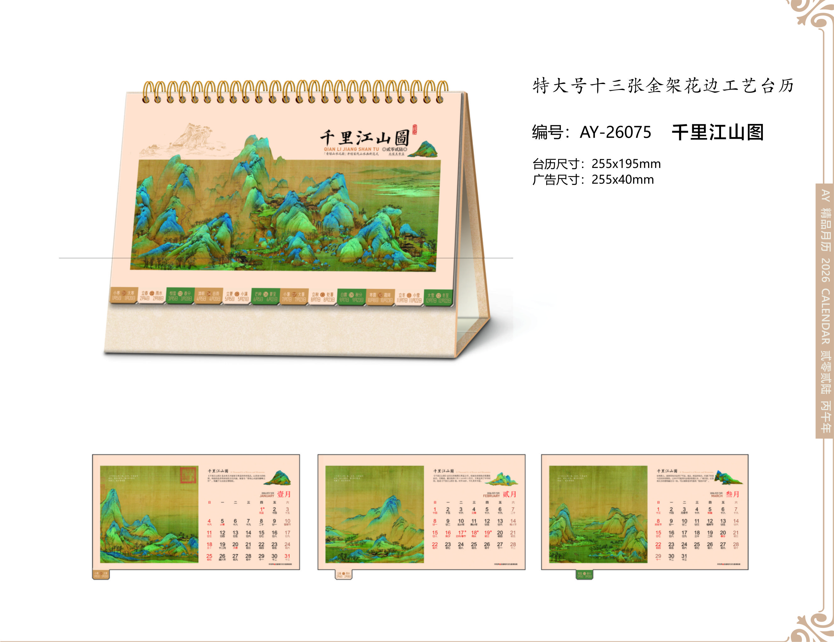 特大號十三張金架花邊工藝臺歷-千里江山圖