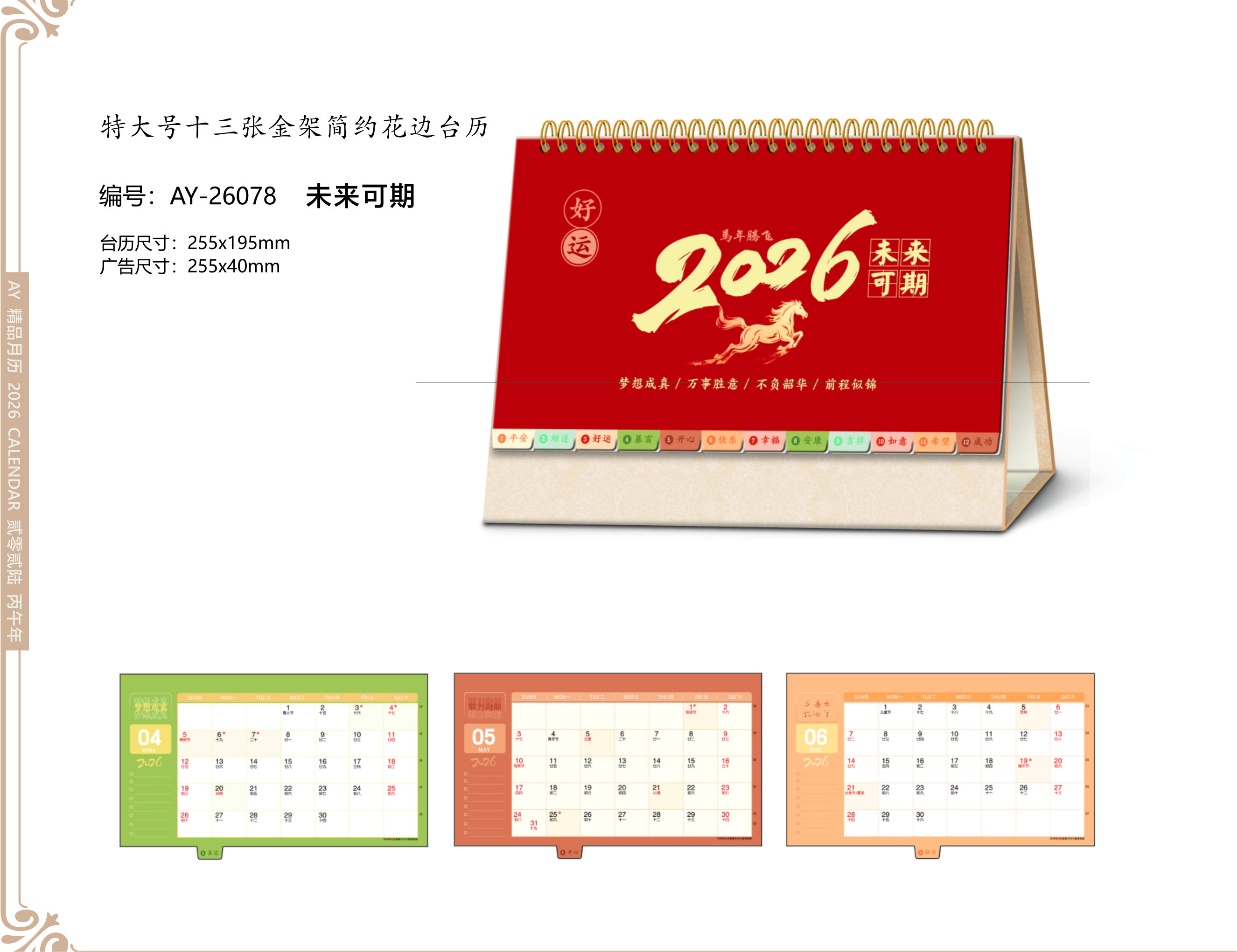 特大號十三張金架簡約花邊臺歷- 未來可期