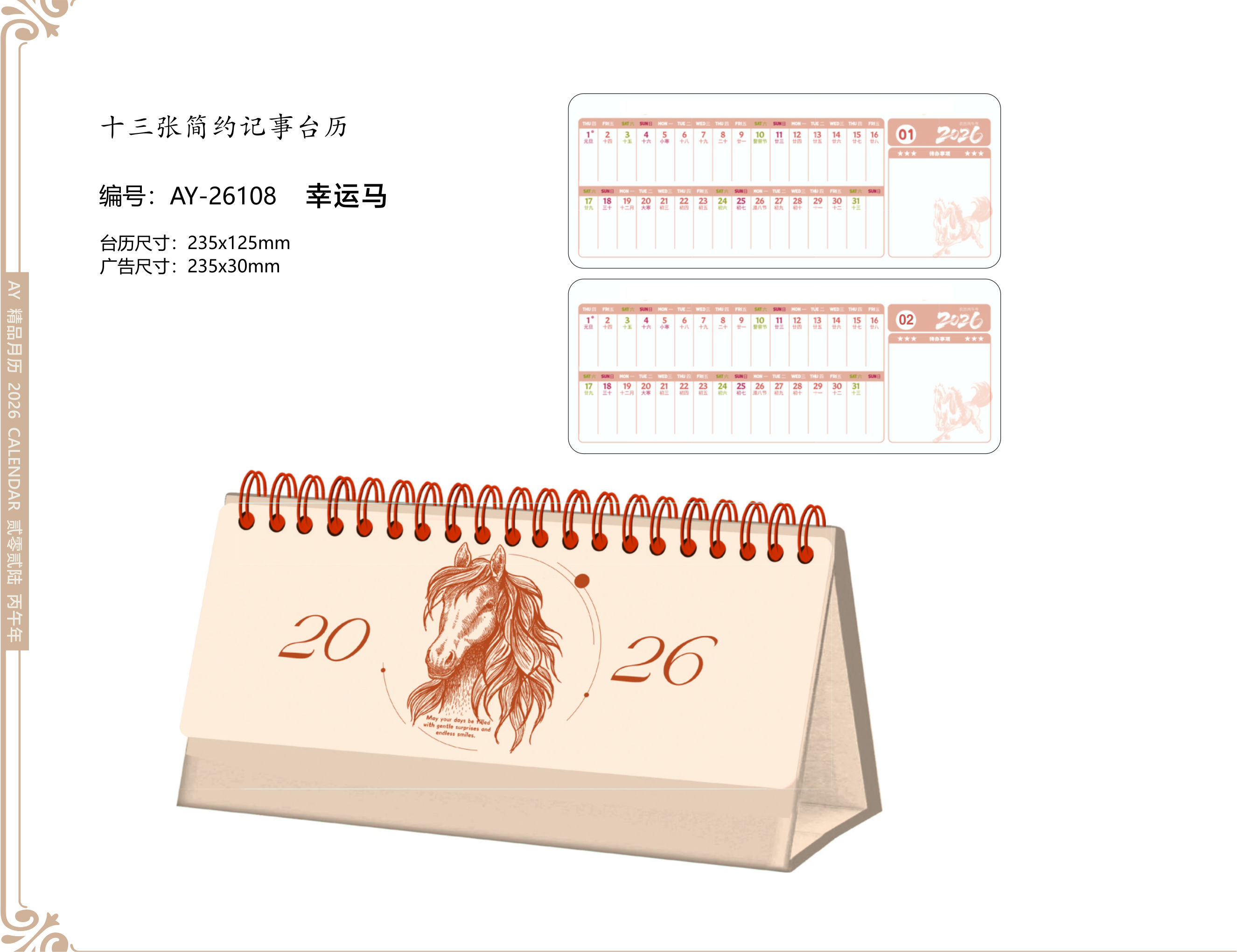 臺(tái)歷尺寸:235x125mm廣告尺寸:235x30mm