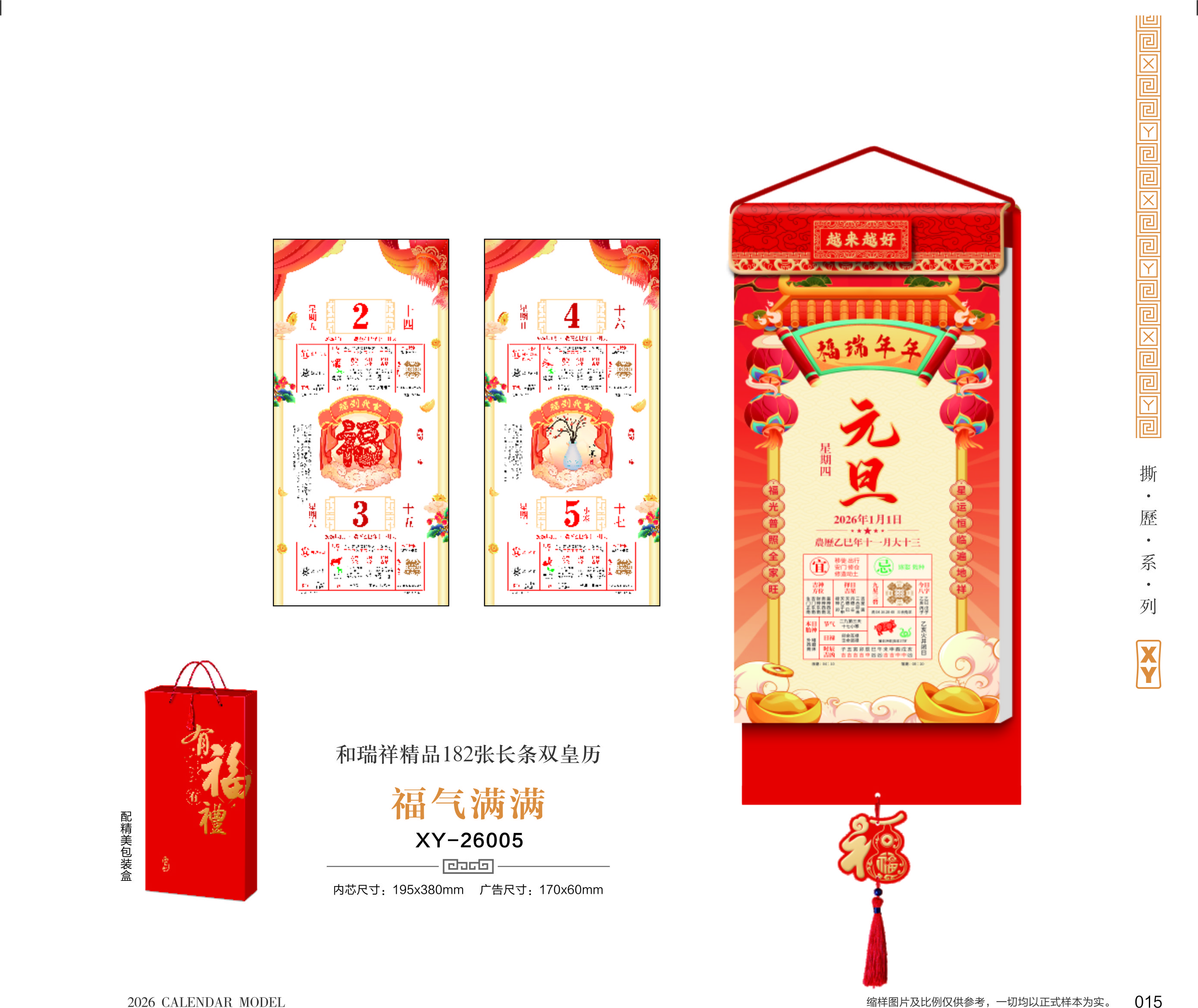 和瑞祥精品182張長(zhǎng)條雙皇歷-福氣滿滿