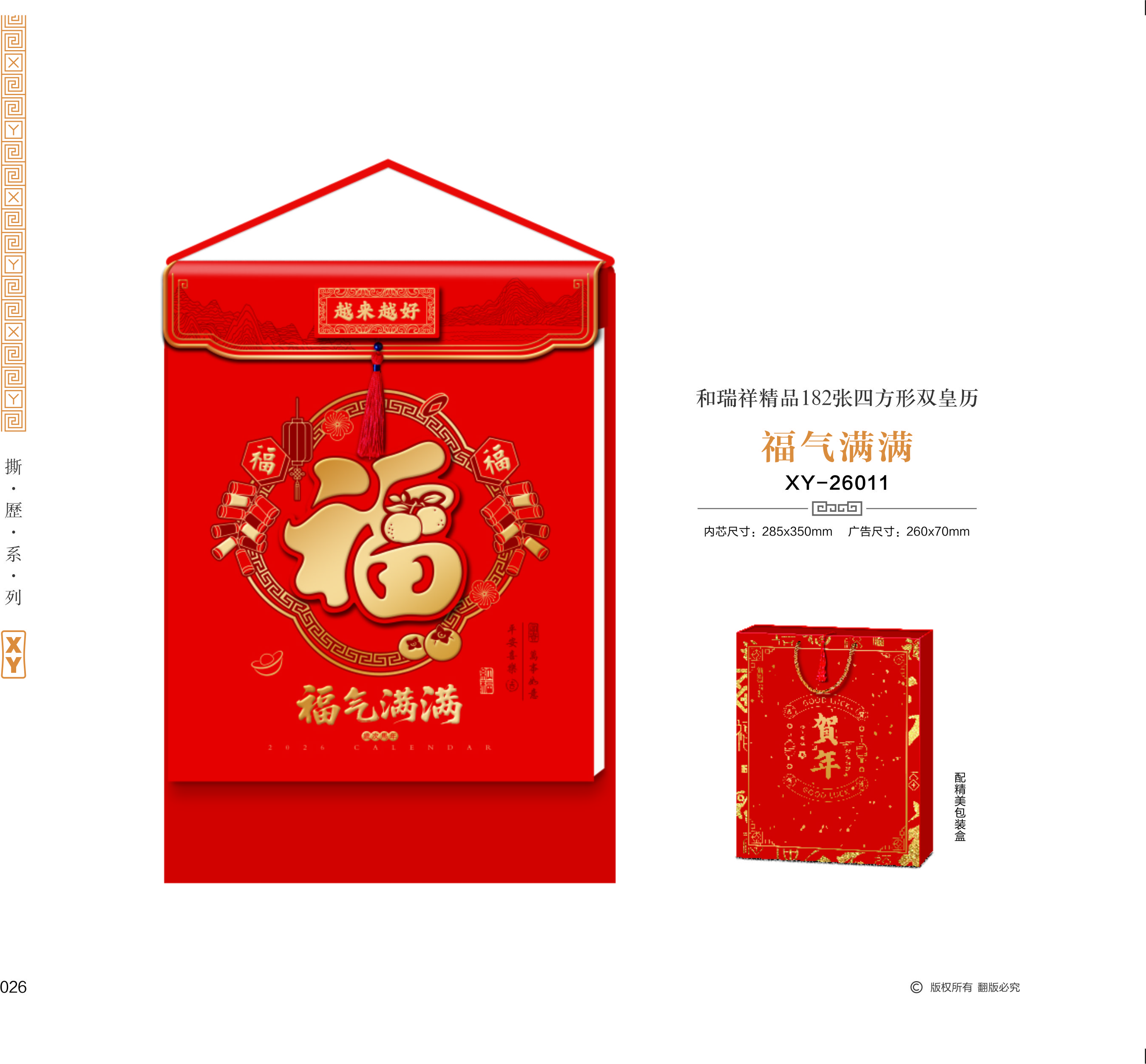 和瑞祥精品182張四方形雙皇歷-福氣滿滿