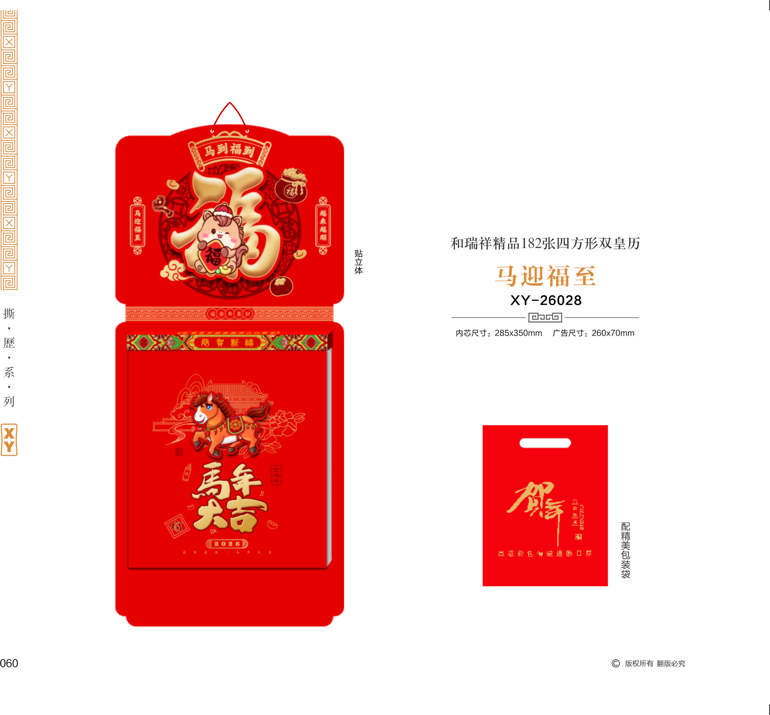 和瑞祥精品182張四方形雙皇歷-馬迎福至