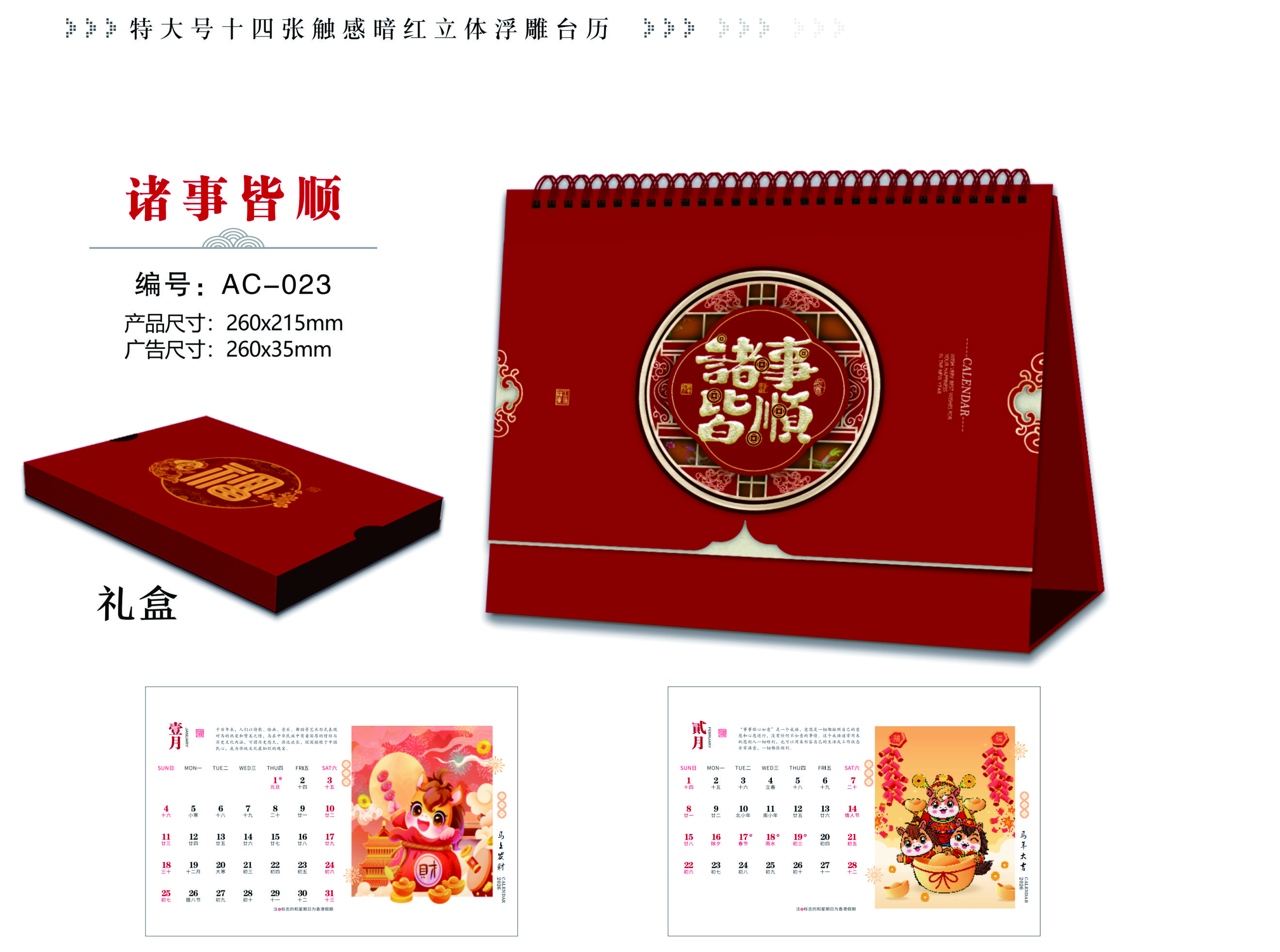 特大號(hào)十四張觸感暗紅立體浮雕臺(tái)歷-諸事皆順