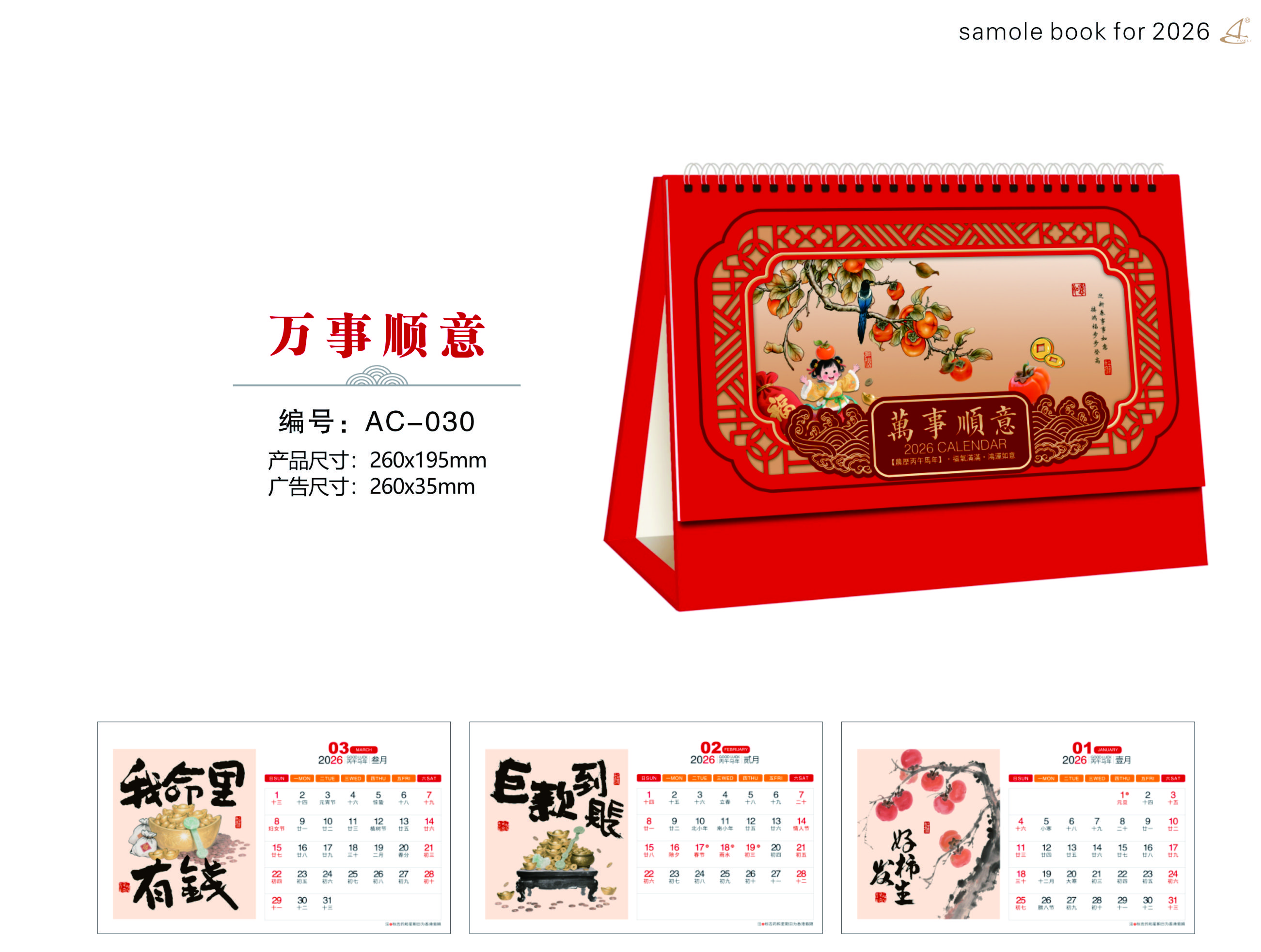 十四張觸感紅鏤空浮雕燙雙色金工藝臺(tái)歷-萬(wàn)事順意
