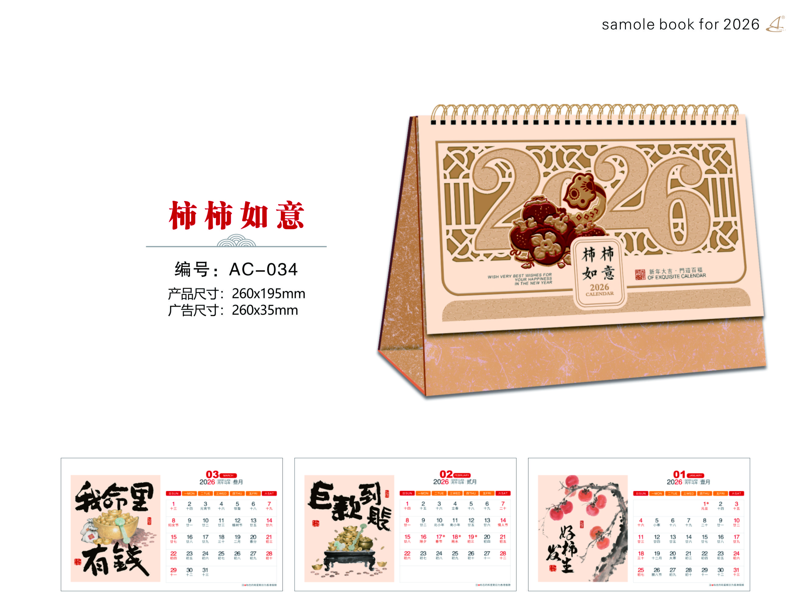 十四張?zhí)胤N紙鏤空浮雕燙三色金工藝臺(tái)歷-柿柿如意