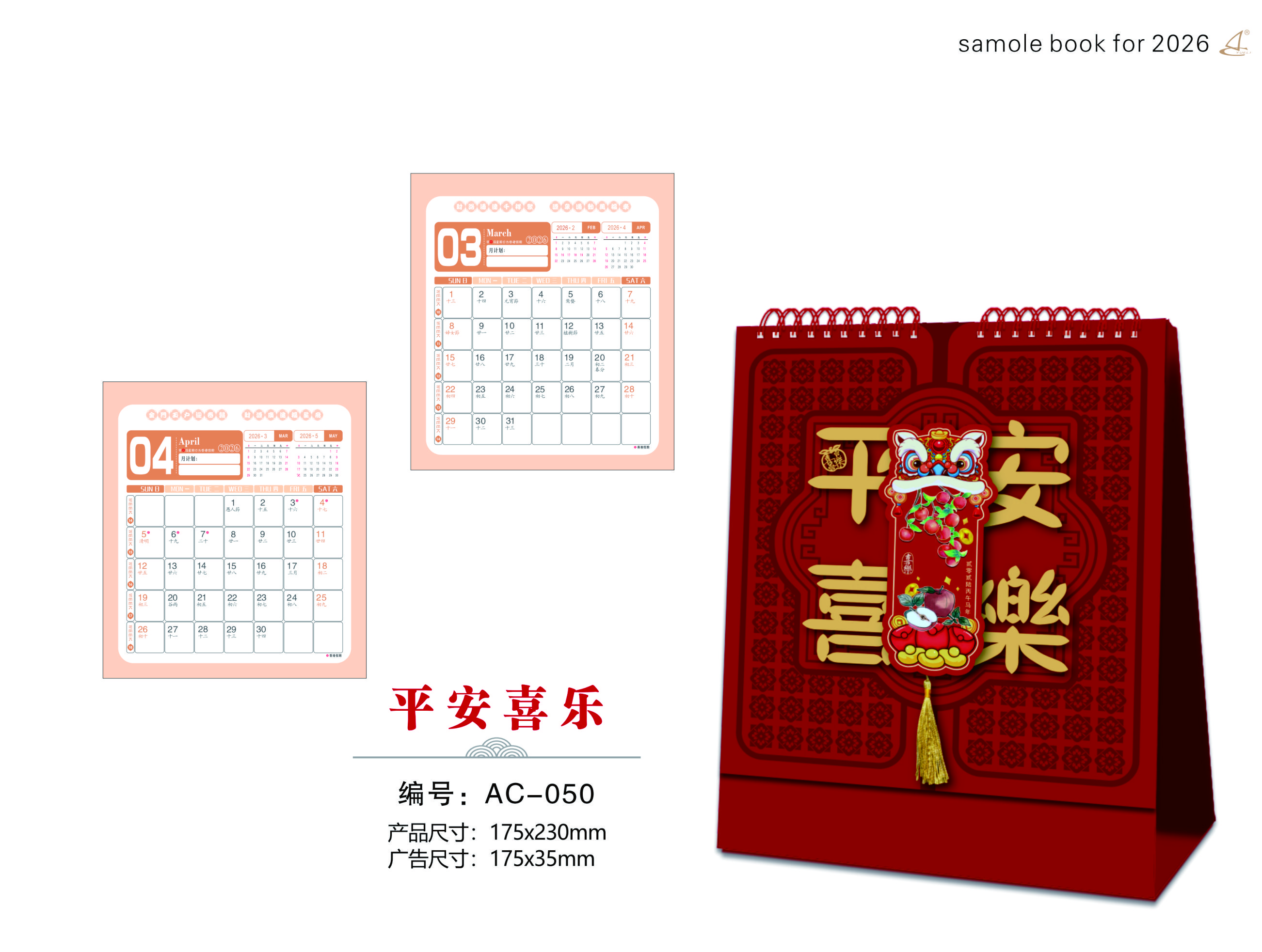 高架觸感暗紅立體浮雕燙雙色金工藝臺(tái)歷-平安喜樂