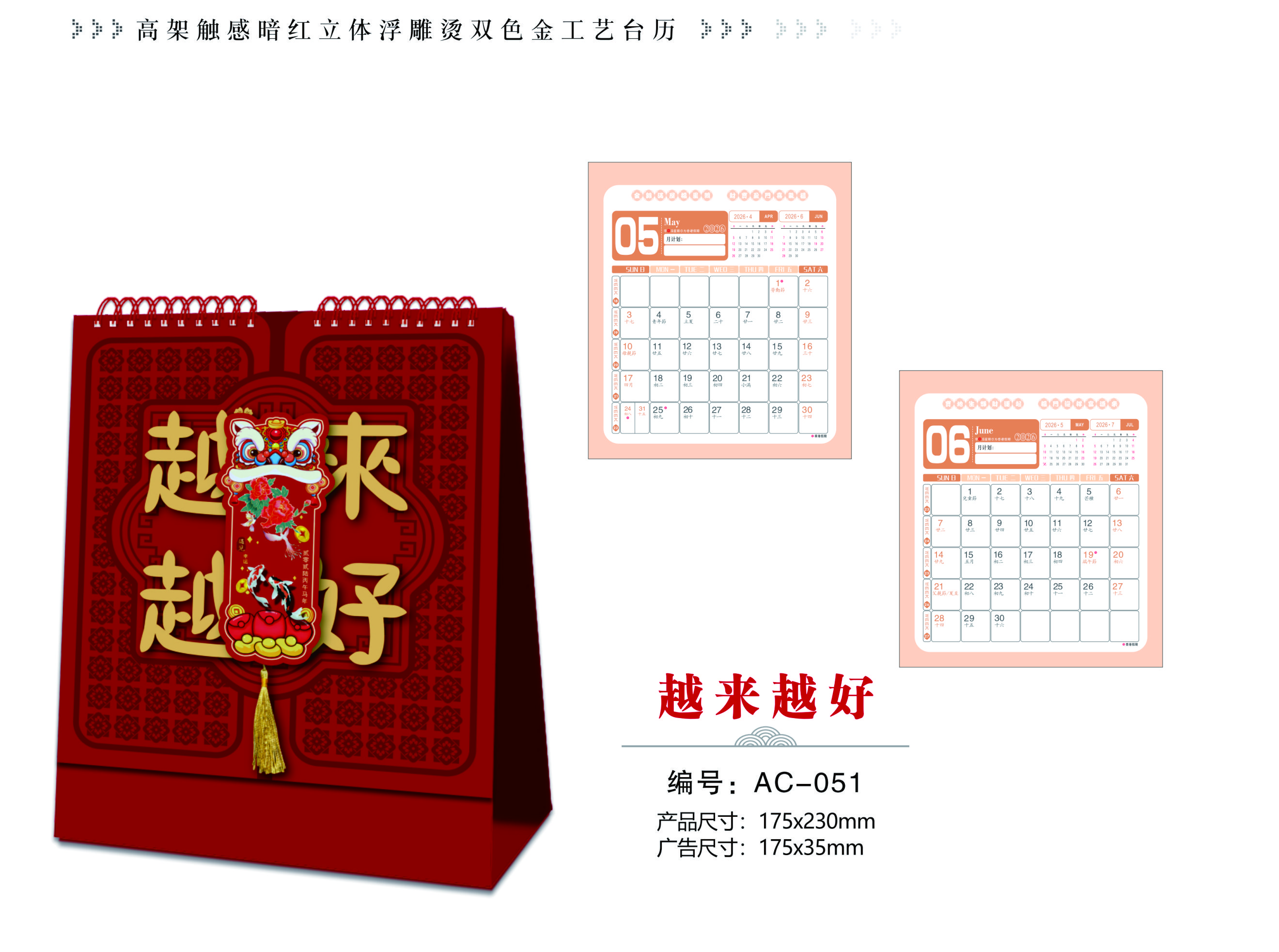 高架觸感暗紅立體浮雕燙雙色金工藝臺歷-越來越好
