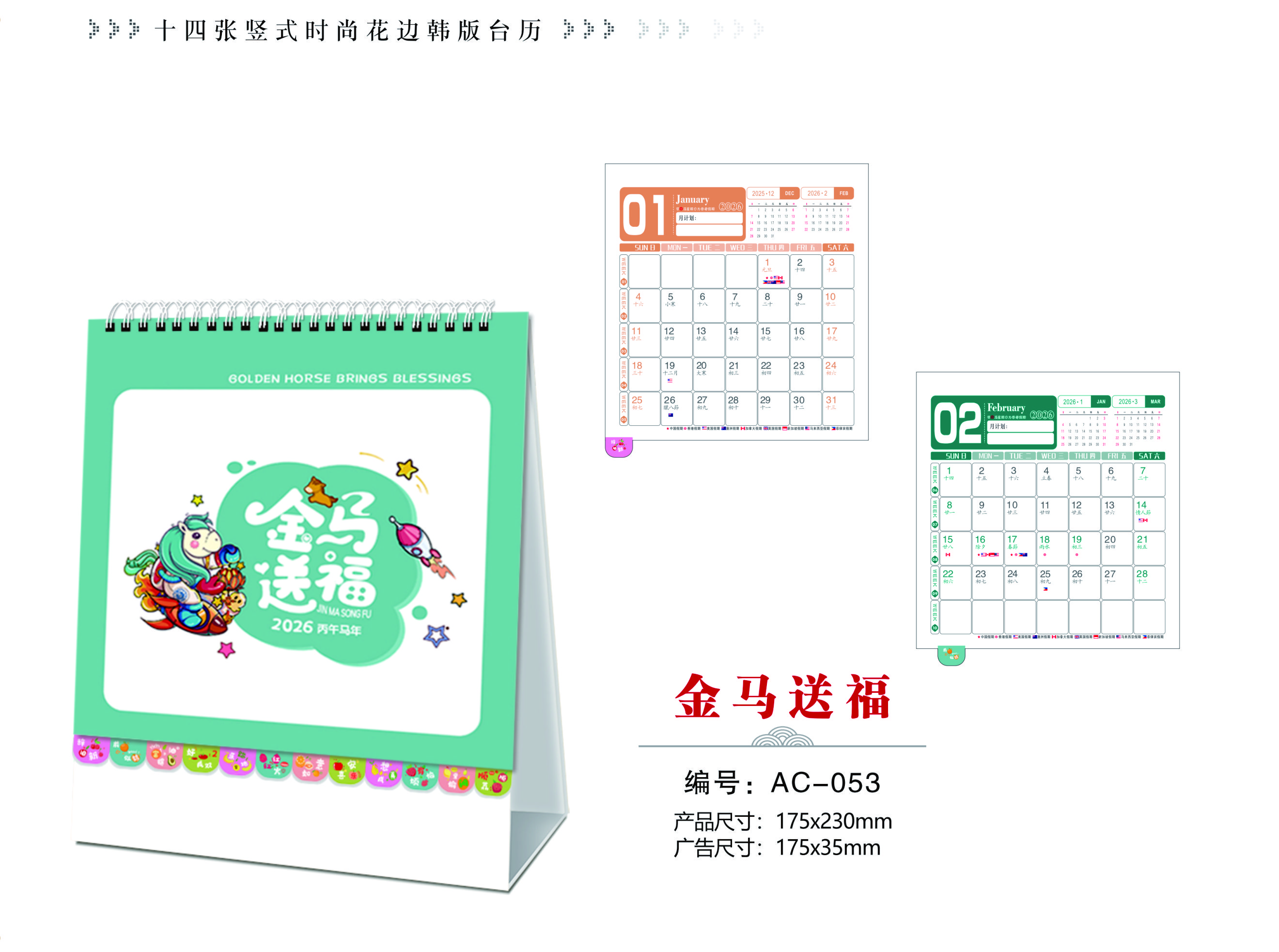 十四張豎式時(shí)尚花邊韓版臺(tái)歷-金馬送福
