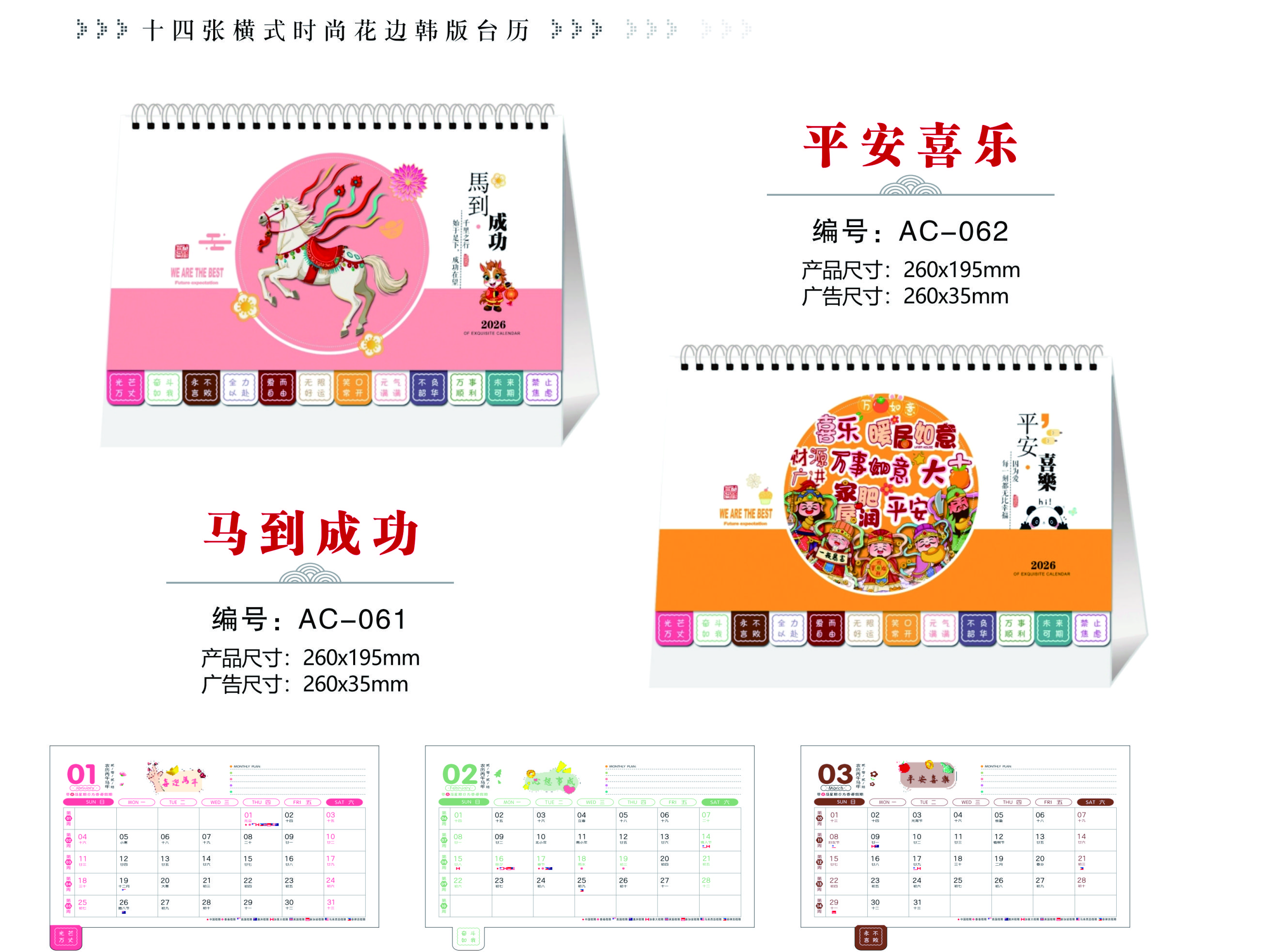 十四張橫式時尚花邊韓版臺歷-馬到成功