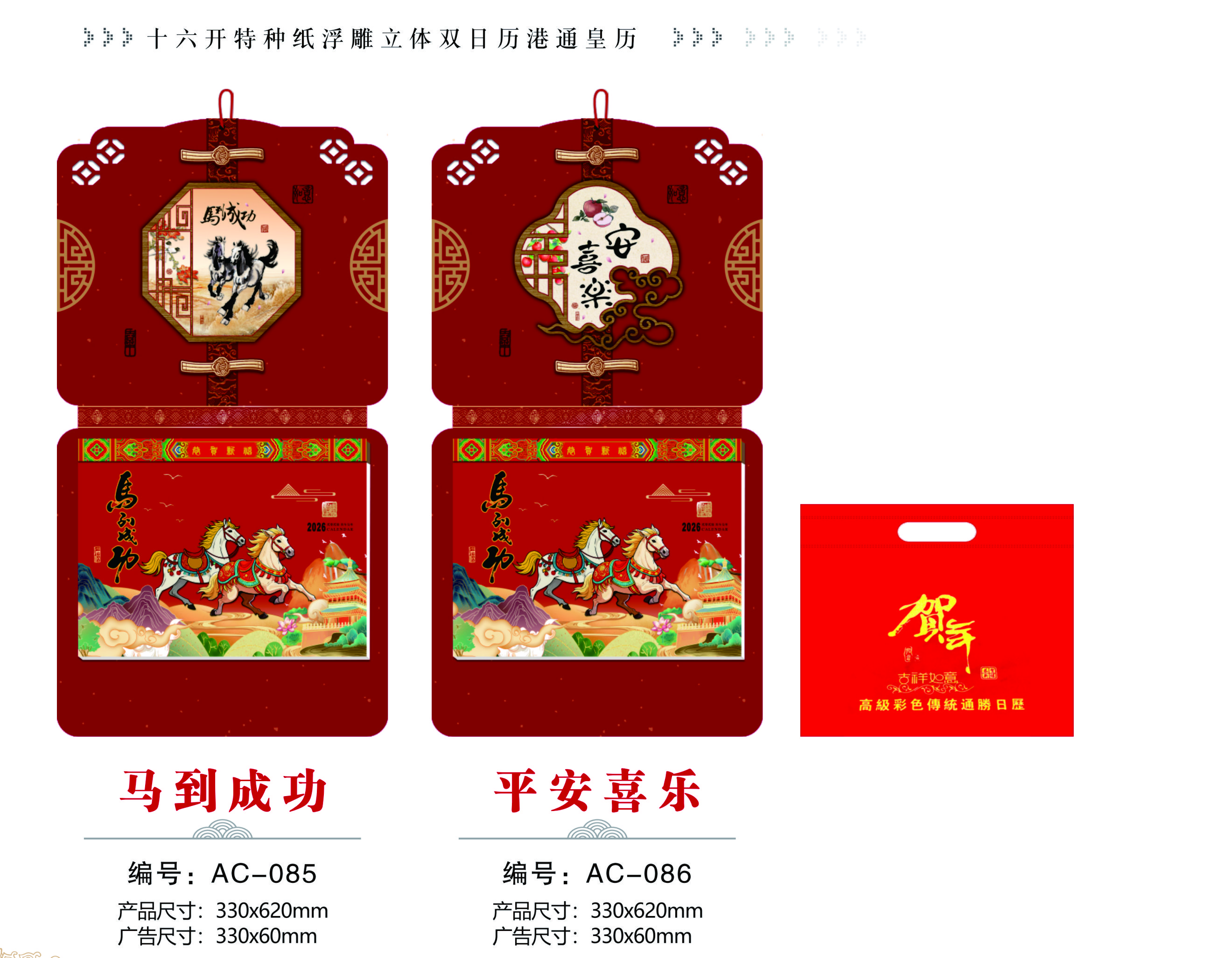 十六開特種紙浮雕立體雙日歷港通皇歷-馬到成功