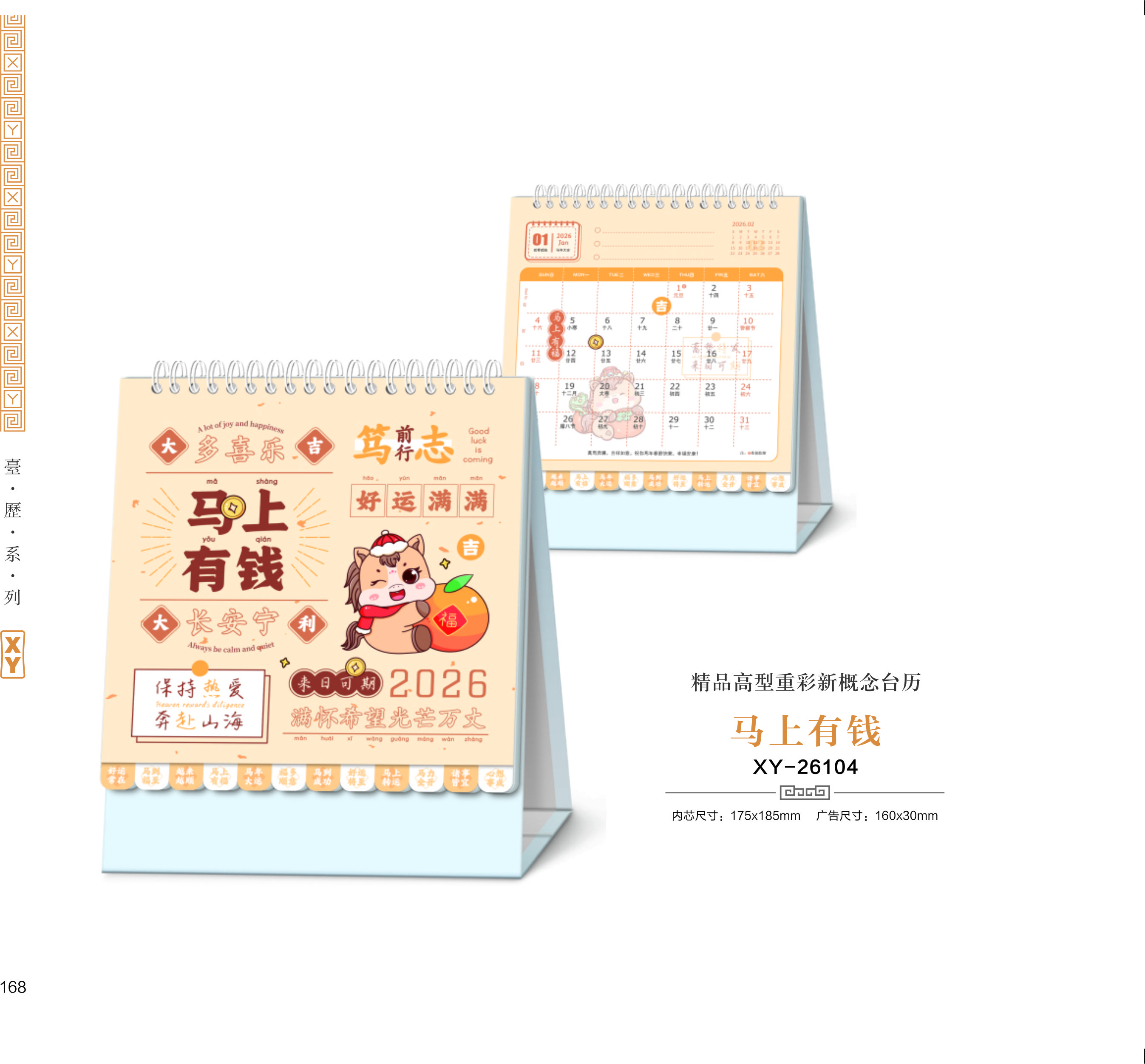 精品高型重彩新概念臺(tái)歷-馬上有錢