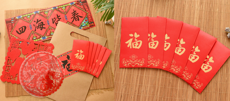 春聯(lián)大禮包 四海皆春(大吉大利款紅包) 對聯(lián)(128g銅版紙):101x19cm 118x21.5cm福字(128g銅版紙):32x32cm紅包(157g紅色絲綢布x6):9x17cm禮袋(230g美國?ǎ42x28cm窗花(靜電膜x2):20x20cm