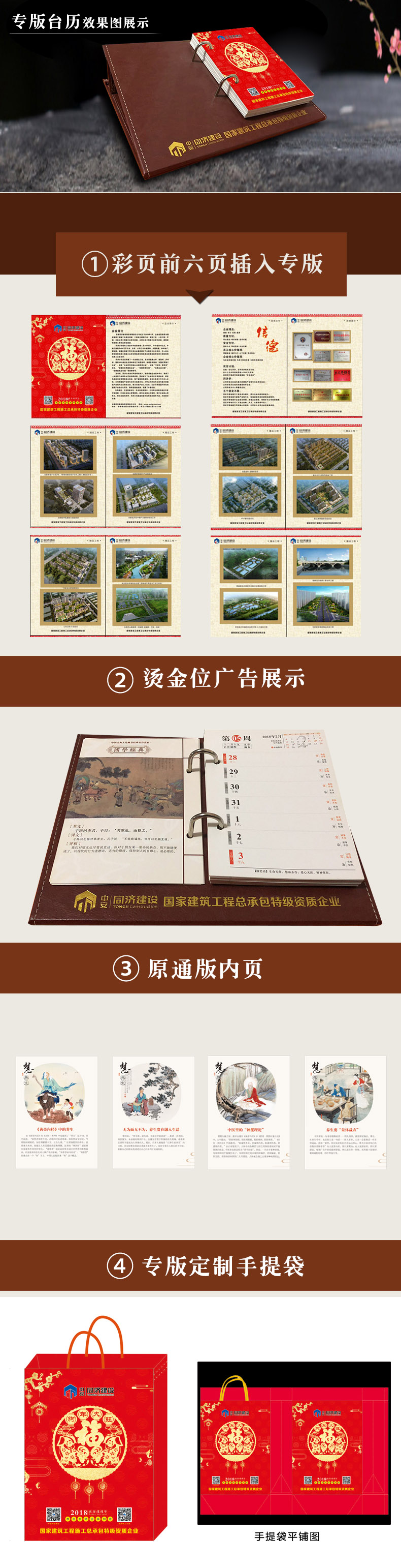 專版高檔臺歷設(shè)計制作案例-同濟建設(shè)集團2018高檔仿皮臺歷專版臺座